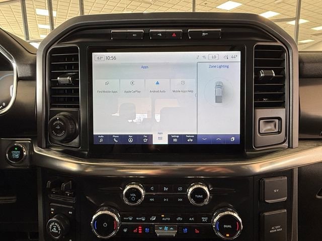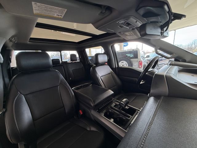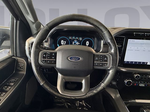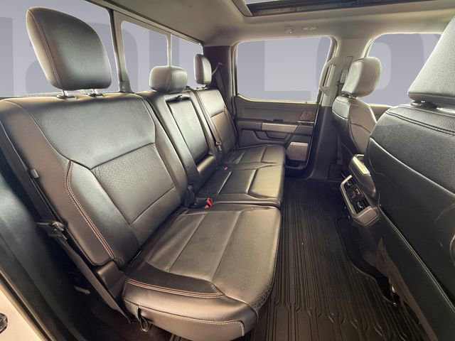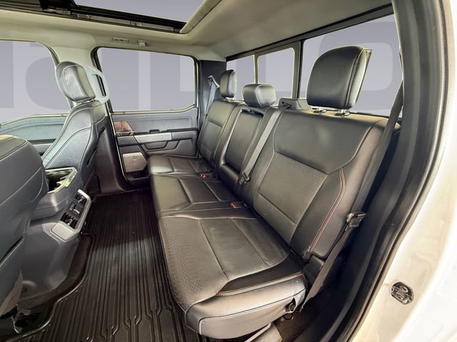 Recent Arrival! Bed Utility Package (BoxLink, LED Box Lighting, Power Tailgate, and Tailgate Step w/Tailgate Work Surface), Equipment Group 502A High (2nd Row Heated Seats, Heated Steering Wheel, Leather-Trimmed Bucket Seats, LED Projector w/Dynamic Bending Headlamps, Onboard 400W Outlet, Power Glass Sideview Mirr w/Chrome Skull Caps, Power Tilt/Telescoping Steering Column w/Memory, Radio: B&O Sound System by Bang & Olufsen, Rain-Sensing Wipers, Universal Garage Door Opener, and Wireless Charging Pad), Ford Co-Pilot360 Assist 2.0 (DISC) (Connected Built-In Navigation, Evasive Steering Assist, Intelligent Adaptive Cruise Control w/Stop & Go, Intersection Assist, and Speed Sign Recognition), Lariat Chrome Appearance Package (6" Bright Polished Running Board, Chrome 2-Bar Grille w/4 Minor Bars, Chrome Door & Tailgate Handles w/Body-Color Bezel, Chrome Single-Tip Exhaust, Chrome Skull Caps on Exterior Mirrors, and Wheels: 18" Chrome-Like PVD), Max Trailer Tow Package (Class IV Trailer Hitch Receiver, Extended Range 36 Gallon Fuel Tank, Integrated Trailer Brake Controller, and Pro Trailer Backup Assist), 18" Machined-Aluminum Wheels, 4-Wheel Disc Brakes, 7 Speakers, ABS brakes, Adjustable pedals, Air Conditioning, Alloy wheels, AM/FM radio: SiriusXM with 360L, Auto High-beam Headlights, Auto Start-Stop Removal, Auto-dimming door mirrors, Auto-dimming Rear-View mirror, Automatic temperature control, Brake assist, Bumpers: chrome, Compass, Delay-off headlights, Driver door bin, Driver vanity mirror, Dual front impact airbags, Dual front side impact airbags, Electronic Stability Control, Emergency communication system: SYNC 4 911 Assist, Exterior Parking Camera Rear, Front anti-roll bar, Front Center Armrest w/Storage, Front dual zone A/C, Front fog lights, Front reading lights, Front wheel independent suspension, Fully automatic headlights, Heated door mirrors, Heated front seats, Illuminated entry, Leather-Trimmed 40/20/40 Front Seat, LED Sideview Mirror Spotlights, Low tire pressure warning, Memory seat, Occupant sensing airbag, Outside temperature display, Overhead airbag, Overhead console, Panic alarm, Passenger door bin, Passenger vanity mirror, Pedal memory, Power door mirrors, Power driver seat, Power passenger seat, Power steering, Power windows, Radio data system, Radio: AM/FM SiriusXM w/360L, Rear reading lights, Rear seat center armrest, Rear step bumper, Rear window defroster, Remote keyless entry, Security system, Speed control, Speed-sensing steering, Split folding rear seat, Steering wheel mounted audio controls, SYNC 4 w/Enhanced Voice Recognition, Tachometer, Telescoping steering wheel, Tilt steering wheel, Traction control, Tray Style Floor Liner (47W), Trip computer, Turn signal indicator mirrors, Twin Panel Moonroof, Variably intermittent wipers, Ventilated front seats, Voltmeter, and Wheels: 20" Chrome-Like PVD.