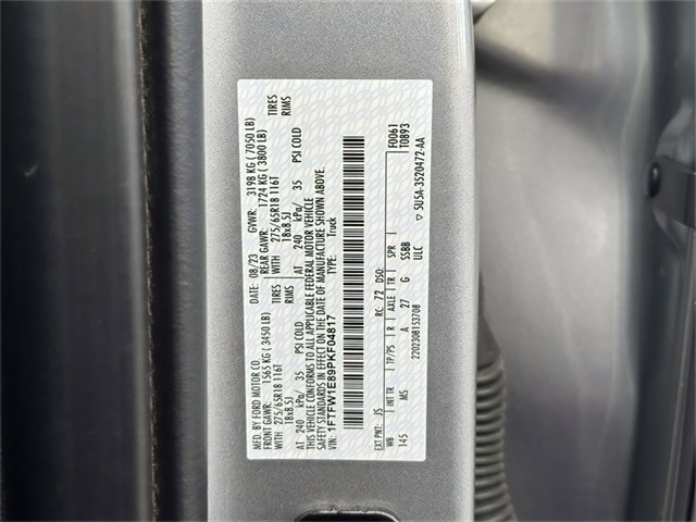 18" Silver Painted Aluminum Wheels, 8-Way Power Driver's Seat w/Power Lumbar, Alloy wheels, Cloth 40/20/40 Front Seat, Exterior Parking Camera Rear, Front Center Armrest w/Storage, Radio: AM/FM Stereo w/6 Speakers, SYNC 4, 3.31 Axle Ratio, 4-Wheel Disc Brakes, 6 Speakers, ABS brakes, Air Conditioning, AM/FM radio, Auto High-beam Headlights, Brake assist, Bumpers: chrome, Compass, Delay-off headlights, Driver door bin, Driver vanity mirror, Dual front impact airbags, Dual front side impact airbags, Electronic Stability Control, Emergency communication system: SYNC 4 911 Assist, Front anti-roll bar, Front fog lights, Front License Plate Bracket, Front reading lights, Front wheel independent suspension, Fully automatic headlights, Heated door mirrors, Illuminated entry, Low tire pressure warning, Occupant sensing airbag, Outside temperature display, Overhead airbag, Overhead console, Panic alarm, Passenger door bin, Passenger vanity mirror, Power door mirrors, Power steering, Power windows, Radio data system, Rear reading lights, Rear step bumper, Rear window defroster, Remote keyless entry, Security system, Speed control, Speed-sensing steering, Split folding rear seat, Steering wheel mounted audio controls, Tachometer, Telescoping steering wheel, Tilt steering wheel, Traction control, Trip computer, Variably intermittent wipers, Voltmeter, and Wheels: 17" Silver Painted Aluminum.