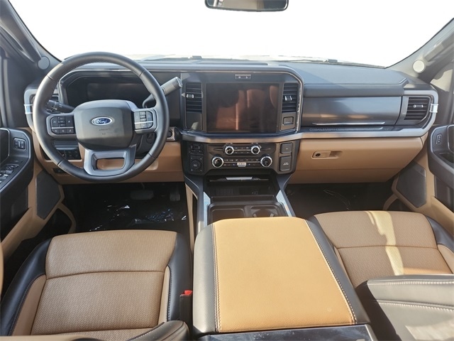 Chrome Package (6" Angular Bright Anodized Step Bars, Chrome Door Handles, Chrome Exhaust Tip, and Unique Chrome Mirror Caps), FX4 Off-Road Package (Hill Descent Control, Off-Road Specifically Tuned Shock Absorbers, and Unique FX4 Off-Road Box Decal), GVWR: F-250 >10K Package, High Capacity 11.6" Axle Upgrade Package, Order Code 608A (3.73 Axle Ratio, Flow-Through Console, Front ActiveX Trimmed 40/Console/40 Seats, Radio: B&O Sound System by Bang and Olufsen, SiriusXM Radio with 360L, SYNC 4 with Enhanced Voice Recognition, and Wheels: 18" Bright Machined and Carbonized Gray Aluminum), Snow Plow Prep Package, Front fog lights, Navigation System, Ventilated front seats, 4-Wheel Disc Brakes, 410 Amp Dual Alternators, 8 Speakers, ABS brakes, Adjustable pedals, Air Conditioning, Alloy wheels, AM/FM radio: SiriusXM with 360L, Auto High-beam Headlights, Auto-dimming Rear-View mirror, Automatic temperature control, BLIS with Cross-Traffic Alert, Brake assist, Bumpers: chrome, Compass, Delay-off headlights, Driver door bin, Driver vanity mirror, Dual AGM 68 AH Battery, Dual front impact airbags, Dual front side impact airbags, Electronic Stability Control, Emergency communication system: SYNC 4 911 Assist, Engine Block Heater, Front anti-roll bar, Front Bucket Seats, Front Center Armrest, Front dual zone A/C, Front License Plate Bracket, Front reading lights, Fully automatic headlights, Garage door transmitter, Heated door mirrors, Heated front seats, Heated rear seats, Heated steering wheel, Illuminated entry, Internet access capable: FordPass Connect 5G, Low tire pressure warning, Memory seat, Outside temperature display, Overhead airbag, Overhead console, Panic alarm, Passenger door bin, Passenger vanity mirror, Pedal memory, Power door mirrors, Power driver seat, Power passenger seat, Power steering, Power windows, Power-Sliding Rear-Window with Defrost, Privacy Glass, Rain sensing wipers, Rapid-Heat Supplemental Cab Heater, Rear Parking Sensors, Rear reading lights, Rear seat center armrest, Rear step bumper, Rear window defroster, Remote keyless entry, Security system, Speed control, Split folding rear seat, Steering wheel mounted audio controls, Tachometer, Telescoping steering wheel, Tilt steering wheel, Traction control, Trip computer, Turn signal indicator mirrors, Twin Panel Power Moonroof, Upfitter Switches (6), and Variably intermittent wipers.