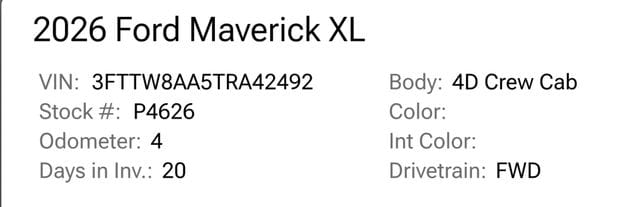 2026 Ford Maverick XL Truck EcoBoost I4 GTDi DOHC Turbocharged VCTfor Sale in Albemarle County