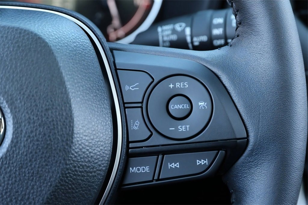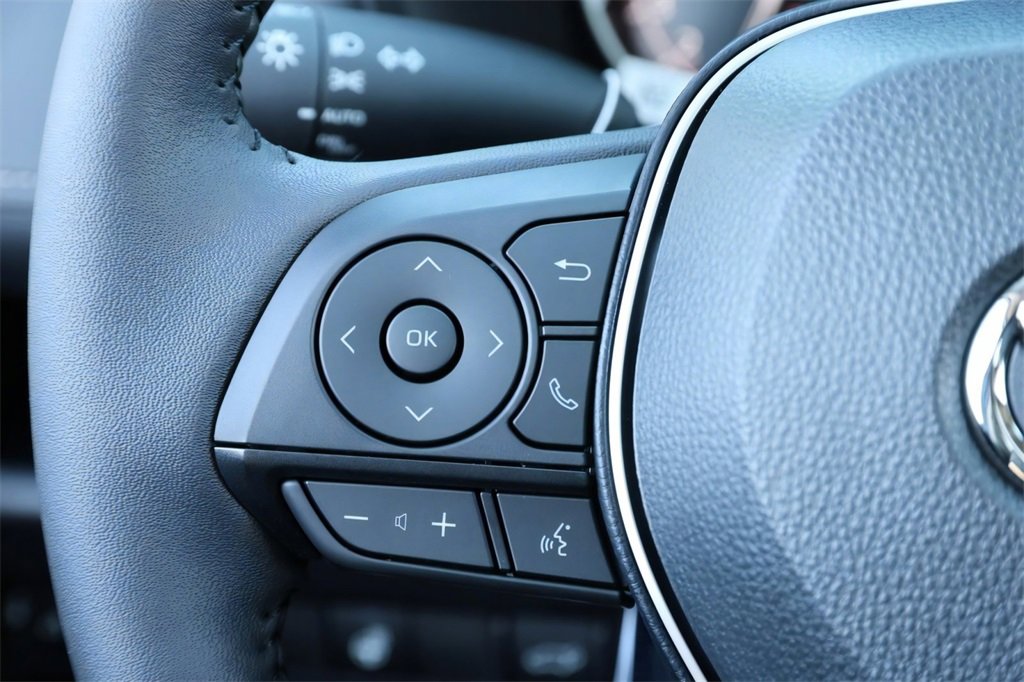 - Urethane tilt/telescopic 3-spoke steering wheel with controls for audio, multi-information display (mid), Bluetooth. ®hands-free phone, voice-command, dynamic radar cruise control (drcc),lane departure alert (lda)and lane trace assist (lta).A compatible. Bluetooth. ®-enabled phone must first be paired. Phone performance depends on software, coverage and carrier. The. Bluetooth. ® word mark and logos are registered trademarks of bluetooth sig, inc. Use of such marks by toyota is under license.,Dynamic radar cruise control is not a substitute for safe and attentive driving. See. Owner’s. Manual. For limitations.,Lane departure alert with steering assist is designed to read visible lane markers under certain conditions. It provides a visual/audible alert and slight steering force when lane departure is detected. It is not a collision-avoidance system or a substitute for safe and attentive driving. Effectiveness depends on many factors including road, weather and vehicle conditions. See. Owner’s. Manual. For limitations.,The lane tracing assist (lta) lane centering function is designed to read visible lane markers and detect other vehicles under certain conditions. It is only operational when drcc is engaged. See. Owner's. Manual. For limitations.