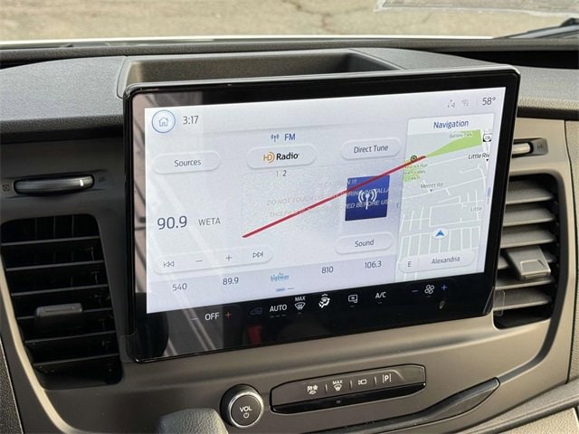 Heavy-Duty Trailer Tow Package (Frame Mounted Hitch Receiver and Tow/Haul Mode w/Trailering Wiring Provisions), Order Code 101A, 110V/400W Power Outlet, 360-Degree Camera w/Split View, 4 Speakers, 4-Wheel Disc Brakes, 4.10 Limited-Slip Axle Ratio, ABS brakes, Air Conditioning, AM/FM radio, AM/FM Stereo, Auto High-beam Headlights, Brake assist, Dark Palazzo Gray Cloth Bucket Seats w/Armrests, Dark Palazzo Gray Vinyl Bucket Seats, Delay-off headlights, Digital Rearview Mirror, Driver door bin, Driver's Seat Mounted Armrest, Dual AGM Batteries (70 Amp-hr Each), Dual front impact airbags, Dual front side impact airbags, Electronic Air Temperature Control, Electronic Stability Control, Exterior Parking Camera Rear, Front anti-roll bar, Front Bucket Seats, Front Fog Lamps, Front License Plate Bracket, Front reading lights, Front wheel independent suspension, Fully automatic headlights, Honeycomb Mesh Grille w/Chrome Surround, Illuminated entry, Intelligent Speed Assist (ISA), Low tire pressure warning, Occupant sensing airbag, Overhead airbag, Panic alarm, Passenger cancellable airbag, Passenger door bin, Power door mirrors, Power steering, Power windows, Radio: AM/FM Stereo w/SYNC 4/SiriusXM w/360L/Nav, Remote keyless entry, Reverse Sensing System, Short-Arm Manual-Folding Heated Pwr Adjusting Mirrors, Short-Arm Manual-Folding Power Adjust Mirrors, Speed control, Steering wheel mounted audio controls, Tachometer, Telescoping steering wheel, Tilt steering wheel, Traction control, Traffic Sign Recognition (TSR), Variably intermittent wipers, Vinyl Front Bucket Seats, and Wheels: 16" Silver Steel w/Black Hubcap. 2024 Ford Transit-350 3.5L V6 Flex Fuel Oxford White