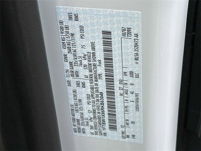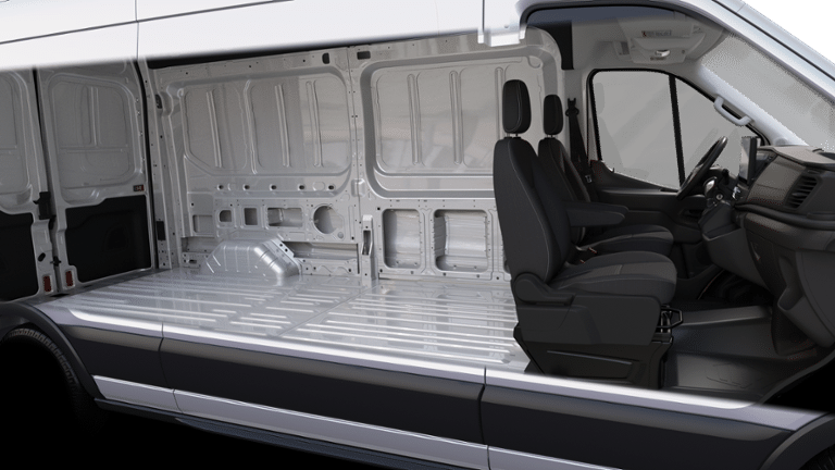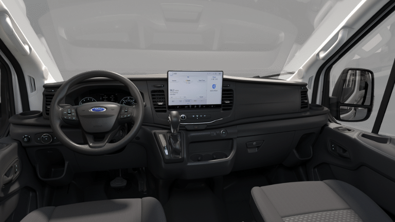 Heavy-Duty Trailer Tow Package (Frame Mounted Hitch Receiver and Tow/Haul Mode w/Trailering Wiring Provisions), Order Code 101A, 110V/400W Power Outlet, 360-Degree Camera w/Split View, 4 Speakers, 4-Wheel Disc Brakes, 4.10 Limited-Slip Axle Ratio, ABS brakes, Air Conditioning, AM/FM radio, AM/FM Stereo, Auto High-beam Headlights, Brake assist, Dark Palazzo Gray Cloth Bucket Seats w/Armrests, Dark Palazzo Gray Vinyl Bucket Seats, Delay-off headlights, Digital Rearview Mirror, Driver door bin, Driver's Seat Mounted Armrest, Dual AGM Batteries (70 Amp-hr Each), Dual front impact airbags, Dual front side impact airbags, Electronic Air Temperature Control, Electronic Stability Control, Exterior Parking Camera Rear, Front anti-roll bar, Front Bucket Seats, Front Fog Lamps, Front License Plate Bracket, Front reading lights, Front wheel independent suspension, Fully automatic headlights, Honeycomb Mesh Grille w/Chrome Surround, Illuminated entry, Intelligent Speed Assist (ISA), Low tire pressure warning, Occupant sensing airbag, Overhead airbag, Panic alarm, Passenger cancellable airbag, Passenger door bin, Power door mirrors, Power steering, Power windows, Radio: AM/FM Stereo w/SYNC 4/SiriusXM w/360L/Nav, Remote keyless entry, Reverse Sensing System, Short-Arm Manual-Folding Heated Pwr Adjusting Mirrors, Short-Arm Manual-Folding Power Adjust Mirrors, Speed control, Steering wheel mounted audio controls, Tachometer, Telescoping steering wheel, Tilt steering wheel, Traction control, Traffic Sign Recognition (TSR), Variably intermittent wipers, Vinyl Front Bucket Seats, and Wheels: 16" Silver Steel w/Black Hubcap. 2024 Ford Transit-350 3.5L V6 Flex Fuel Oxford White
