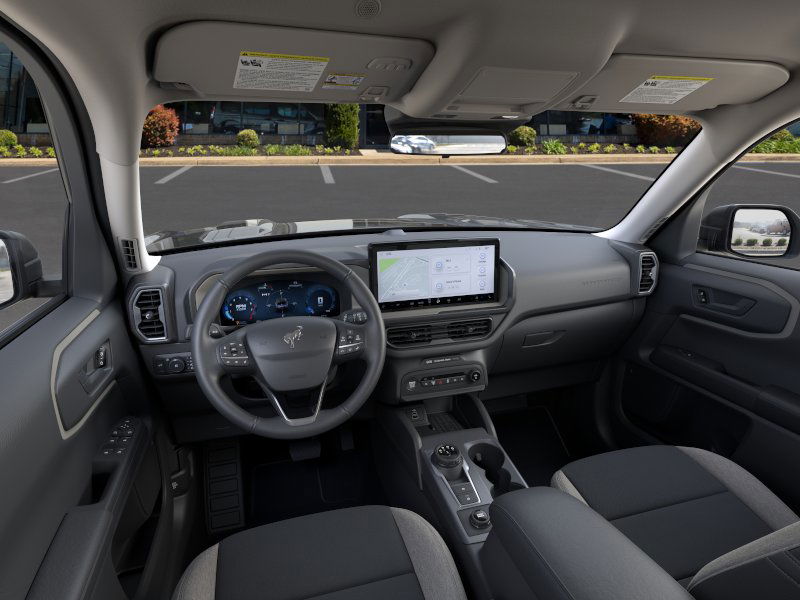 Convenience Package (Front Driver/Passenger Seat Back Map Pockets, Heated 8-Way Power Driver's Seat, LED Fog Lamps, Premium Wrapped Steering Wheel, and Universal Garage Door Opener (UGDO)), Equipment Group 200A, 4-Wheel Disc Brakes, 6 Speakers, ABS brakes, Air Conditioning, Alloy wheels, AM/FM radio: SiriusXM, AM/FM Stereo, Auto High-beam Headlights, Automatic temperature control, Brake assist, Cloth w/Easy-to-Clean Front Bucket Seats, Compass, Delay-off headlights, Driver door bin, Driver vanity mirror, Dual front impact airbags, Dual front side impact airbags, Electronic Stability Control, Emergency communication system: SYNC 4 911 Assist, Four wheel independent suspension, Front anti-roll bar, Front Bucket Seats, Front Center Armrest, Front License Plate Bracket, Front reading lights, Fully automatic headlights, Heated door mirrors, Illuminated entry, Knee airbag, Low tire pressure warning, Occupant sensing airbag, Outside temperature display, Overhead airbag, Overhead console, Panic alarm, Passenger door bin, Passenger vanity mirror, Power door mirrors, Power steering, Power windows, Radio data system, Rear anti-roll bar, Rear Parking Sensors, Rear reading lights, Rear seat center armrest, Rear window defroster, Rear window wiper, Remote keyless entry, Security system, SiriusXM, Speed control, Speed-sensing steering, Speed-Sensitive Wipers, Split folding rear seat, Steering wheel mounted audio controls, SYNC 4 w/Enhanced Voice Recognition, Tachometer, Telescoping steering wheel, Tilt steering wheel, Traction control, Trip computer, Variably intermittent wipers, and Wheels: 17" Carbonized Gray-Painted Aluminum. Recent Arrival! 2025 Ford Bronco Sport 1.5L EcoBoost Shadow Black