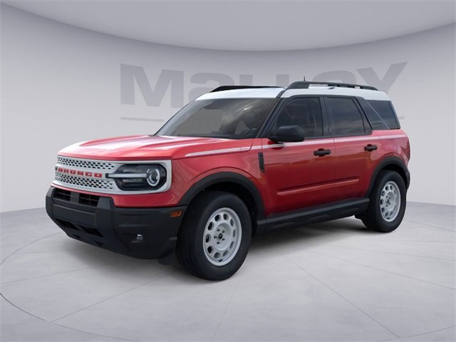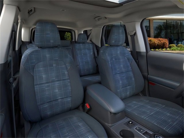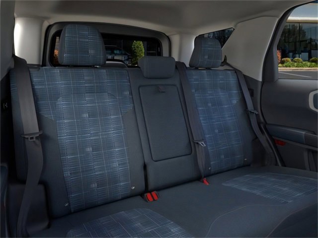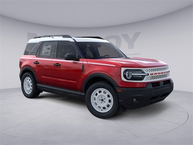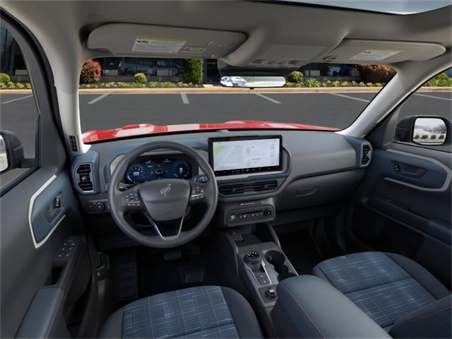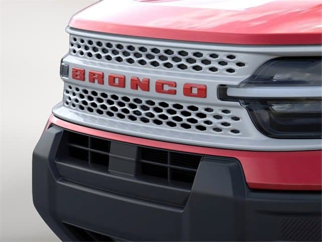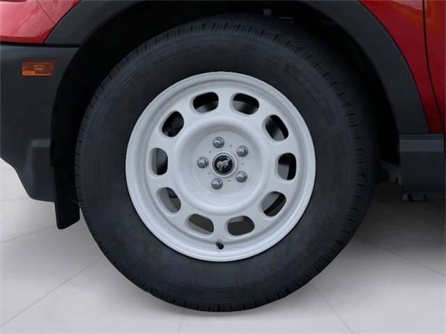 Convenience Package (Front Driver/Passenger Seat Back Map Pockets, Heated 8-Way Power Driver's Seat, LED Fog Lamps, Premium Wrapped Steering Wheel, and Universal Garage Door Opener (UGDO)), Equipment Group 250A, 4-Wheel Disc Brakes, 6 Speakers, ABS brakes, Air Conditioning, Alloy wheels, AM/FM radio: SiriusXM, AM/FM Stereo, Auto High-beam Headlights, Automatic temperature control, Brake assist, Compass, Delay-off headlights, Driver door bin, Driver vanity mirror, Dual front impact airbags, Dual front side impact airbags, Electronic Stability Control, Emergency communication system: SYNC 4 911 Assist, Four wheel independent suspension, Front anti-roll bar, Front Bucket Seats, Front Center Armrest, Front License Plate Bracket, Front reading lights, Fully automatic headlights, Heated door mirrors, Illuminated entry, Knee airbag, Low tire pressure warning, Occupant sensing airbag, Outside temperature display, Overhead airbag, Overhead console, Panic alarm, Passenger door bin, Passenger vanity mirror, Plaid Cloth Front Bucket Seats, Power door mirrors, Power Moonroof, Power steering, Power windows, Radio data system, Rear anti-roll bar, Rear Parking Sensors, Rear reading lights, Rear seat center armrest, Rear window defroster, Rear window wiper, Remote keyless entry, Security system, SiriusXM, Speed control, Speed-sensing steering, Speed-Sensitive Wipers, Split folding rear seat, Steering wheel mounted audio controls, SYNC 4 w/Enhanced Voice Recognition, Tachometer, Telescoping steering wheel, Tilt steering wheel, Traction control, Trip computer, Variably intermittent wipers, and Wheels: 17" Oxford White-Painted Aluminum. 2025 Ford Bronco Sport 1.5L EcoBoost Ruby Red Metallic Tinted Clearcoat