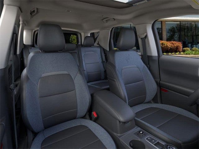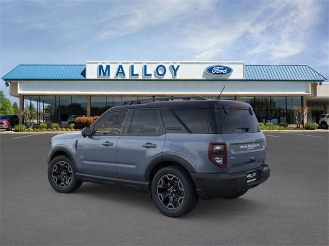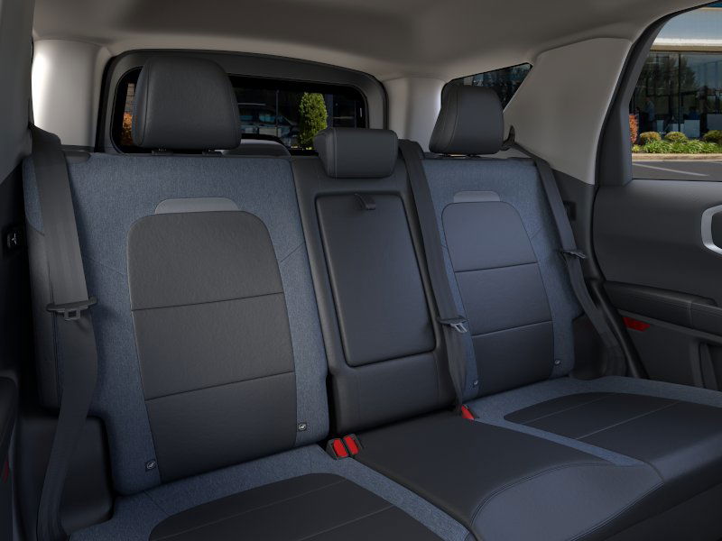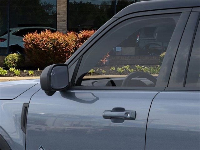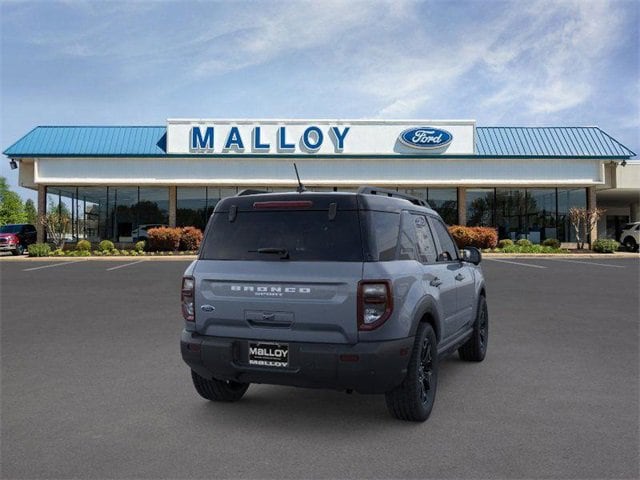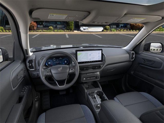 Equipment Group 300A, Outer Banks Tech Package+ (B&O Sound System by Bang & Olufsen, Connected Navigation, and HD Radio), 360-Degree Camera w/Trail & Split View, 4-Wheel Disc Brakes, 6 Speakers, ABS brakes, Air Conditioning, Alloy wheels, AM/FM radio: SiriusXM, AM/FM Stereo, Auto High-beam Headlights, Auto-dimming Rear-View mirror, Automatic temperature control, Brake assist, Compass, Delay-off headlights, Driver door bin, Driver vanity mirror, Dual front impact airbags, Dual front side impact airbags, Electronic Stability Control, Emergency communication system: SYNC 4 911 Assist, Four wheel independent suspension, Front anti-roll bar, Front Bucket Seats, Front Center Armrest, Front Driver/Passenger Seat Back Map Pockets, Front dual zone A/C, Front fog lights, Front License Plate Bracket, Front Parking Sensors, Front reading lights, Fully automatic headlights, Garage door transmitter, Heated door mirrors, Heated front seats, Heated steering wheel, Illuminated entry, Knee airbag, Low tire pressure warning, Memory seat, Occupant sensing airbag, Outside temperature display, Overhead airbag, Overhead console, Panic alarm, Passenger door bin, Passenger vanity mirror, Power door mirrors, Power driver seat, Power Moonroof, Power passenger seat, Power steering, Power windows, Premium Trimmed Front Bucket Seats w/Ebony/Roast, Radio data system, Rain sensing wipers, Rear anti-roll bar, Rear Parking Sensors, Rear reading lights, Rear seat center armrest, Rear window defroster, Rear window wiper, Remote keyless entry, Reverse Brake Assist, Security system, SiriusXM, Speed control, Speed-sensing steering, Speed-Sensitive Wipers, Split folding rear seat, Steering wheel mounted audio controls, SYNC 4 w/Enhanced Voice Recognition, Tachometer, Telescoping steering wheel, Tilt steering wheel, Traction control, Trip computer, Variably intermittent wipers, and Wheels: 18" Ebony Black-Painted Aluminum. 2025 Ford Bronco Sport 1.5L EcoBoost Azure Gray Metallic Tri-Coat