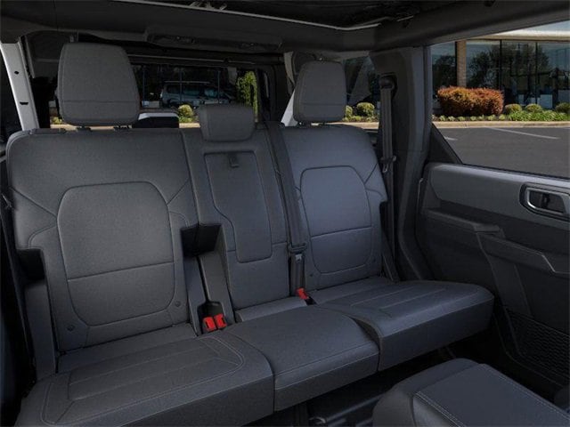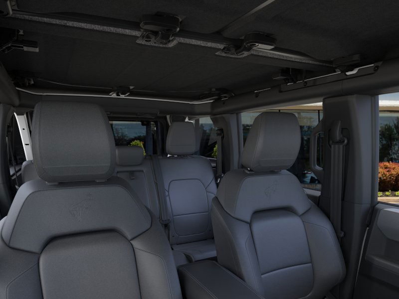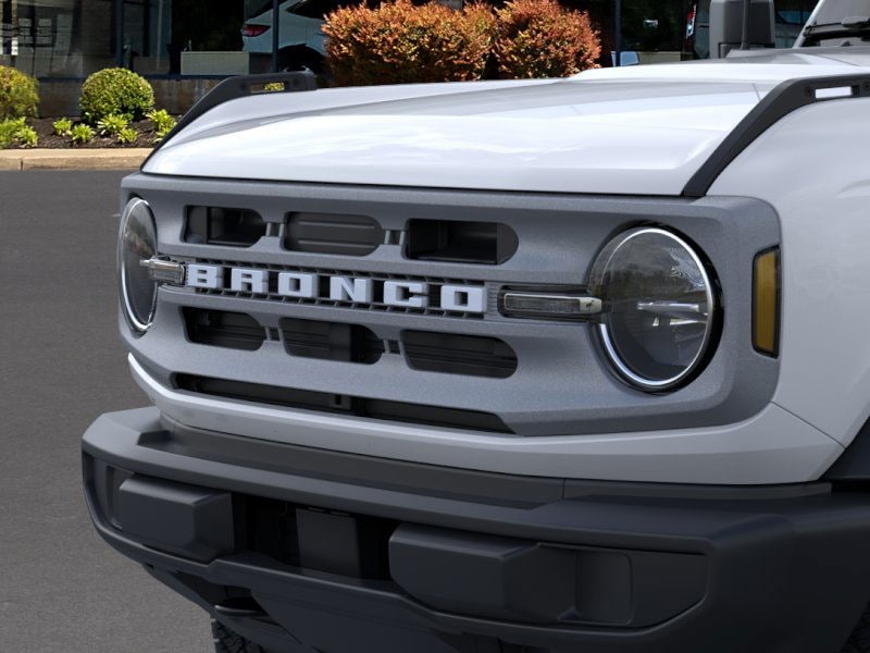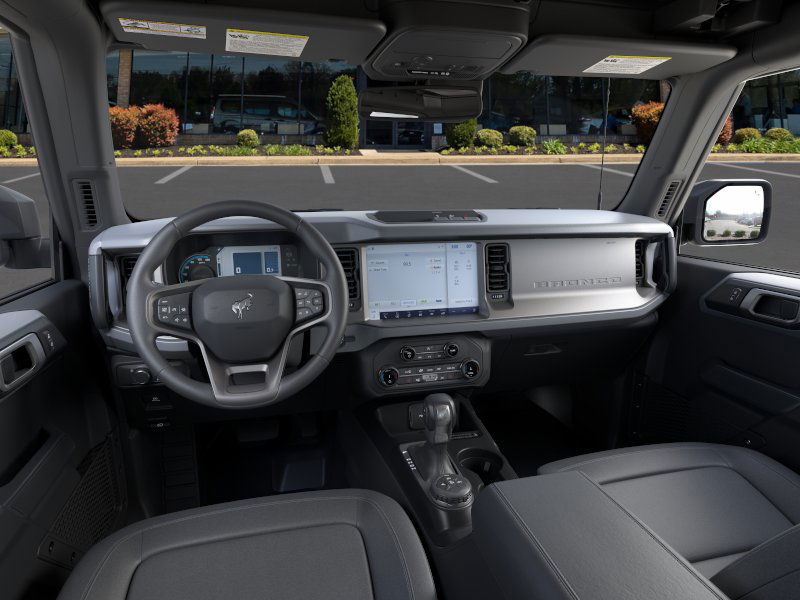 Equipment Group 222A Mid Package (2-Door Intelligent Access w/Lock/Unlock, Ambient Footwell Lighting, Connected Navigation, Dr & Pass Illuminated Sliding Visor Vanity Mirrors, Dual Smart Charging USB Ports, Dual-Zone Electronic Automatic Temperature Control, Front Row Heated Seats, Power Outlet - Back Side of Center Floor Console, and Rear Parking Sensors), 4-Wheel Disc Brakes, 4.46 Axle Ratio, 7 Speakers, ABS brakes, Air Conditioning, Alloy wheels, AM/FM radio: SiriusXM with 360L, AM/FM Stereo, Auto High-Beam Headlamps, Auto High-beam Headlights, BLIS Blind Spot Information System, Brake assist, Carbonized Gray Molded-In-Color Hard Top, Cloth Bucket Seats, Compass, Delay-off headlights, Driver door bin, Driver vanity mirror, Dual front impact airbags, Dual front side impact airbags, Electronic Stability Control, Emergency communication system: 911 Assist, Exterior Parking Camera Rear, Front anti-roll bar, Front Bucket Seats, Front Center Armrest, Front License Plate Bracket, Front reading lights, Front wheel independent suspension, Fully automatic headlights, Heated door mirrors, Illuminated entry, Integrated roll-over protection, Lane-Keeping System, Leather Shift Knob, Low tire pressure warning, Occupant sensing airbag, Outside temperature display, Overhead airbag, Overhead console, Panic alarm, Passenger door bin, Passenger vanity mirror, Power door mirrors, Power steering, Power windows, Pre-Collision Assist w/Automatic Emergency Braking, Radio data system, Rear-View Camera, Rear-Window Defroster & Washer, Remote keyless entry, Remote Start System, Security system, SiriusXM w/360L, Speed control, Split folding rear seat, Steering wheel mounted audio controls, SYNC 4, Tachometer, Telescoping steering wheel, Tilt steering wheel, Traction control, Trip computer, Variably intermittent wipers, and Wheels: 17" Carbonized Gray-Painted Aluminum. Recent Arrival! 2025 Ford Bronco 2.3L EcoBoost I-4 Oxford White