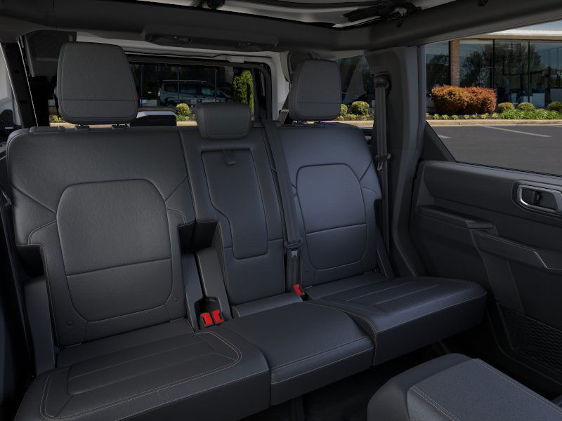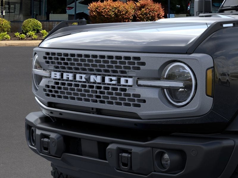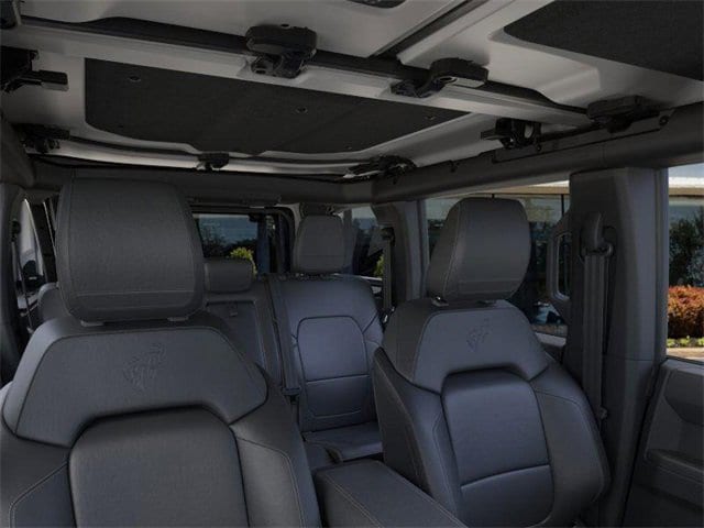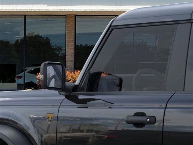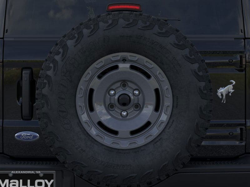 Equipment Group 334A Lux Package (2-Door Intelligent Access w/Lock/Unlock, 360-Degree Camera, Adaptive Cruise Control, Ambient Footwell Lighting, Connected Navigation, Dr & Pass Illuminated Sliding Visor Vanity Mirrors, Dual Smart Charging USB Ports, Dual-Zone Electronic Automatic Temperature Control, Evasive Steering Assist, Front Parking Sensors, Front Row Heated Seats, Information on Demand Panel, Power Outlet - Back Side of Center Floor Console, Radio: B&O Sound System by Bang & Olufsen, Rear Parking Sensors, Sideview Mirrors, and Universal Garage Door Opener), Sasquatch Package (High Clearance Fender Flares, High Clearance Suspension, Position-Sensitive Bilstein Shock Absorbers, and Wheels: 17" Carbonized Gray Painted Aluminum), 4-Wheel Disc Brakes, 7 Speakers, ABS brakes, Air Conditioning, Alloy wheels, AM/FM radio: SiriusXM with 360L, AM/FM Stereo, Auto High-Beam Headlamps, Auto High-beam Headlights, Auto-dimming Rear-View mirror, BLIS Blind Spot Information System, Brake assist, Compass, Delay-off headlights, Driver door bin, Driver vanity mirror, Dual front impact airbags, Dual front side impact airbags, Electronic Stability Control, Emergency communication system: 911 Assist, Exterior Parking Camera Rear, Front anti-roll bar, Front Bucket Seats, Front Center Armrest, Front fog lights, Front License Plate Bracket, Front reading lights, Front wheel independent suspension, Fully automatic headlights, Hard Top Sound Deadening Headliner, Heated door mirrors, Heated front seats, Heated steering wheel, Illuminated entry, Integrated roll-over protection, Lane-Keeping System, Leather Shift Knob, Leather-Trimmed/Vinyl Bucket Seats, Low tire pressure warning, Marine Grade Vinyl Heated Bucket Seats, Occupant sensing airbag, Outside temperature display, Overhead airbag, Overhead console, Panic alarm, Passenger door bin, Passenger vanity mirror, Power door mirrors, Power steering, Power windows, Pre-Collision Assist w/Automatic Emergency Braking, Radio data system, Rear-View Camera, Rear-Window Defroster & Washer, Remote keyless entry, Remote Start System, Security system, Shadow Black Painted Hard Top, SiriusXM w/360L, Speed control, Split folding rear seat, Steering wheel mounted audio controls, SYNC 4, Tachometer, Telescoping steering wheel, Tilt steering wheel, Traction control, Trip computer, Variably intermittent wipers, Voltmeter, and Wheels: 17" Carbonized Gray-Painted Aluminum. Recent Arrival! 2025 Ford Bronco 2.7L EcoBoost V6 Shadow Black