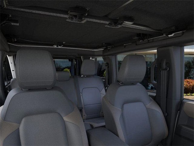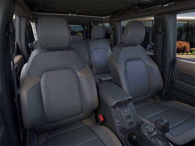 Equipment Group 222A Mid Package (2-Door Intelligent Access w/Lock/Unlock, Ambient Footwell Lighting, Connected Navigation, Dr & Pass Illuminated Sliding Visor Vanity Mirrors, Dual Smart Charging USB Ports, Dual-Zone Electronic Automatic Temperature Control, Front Row Heated Seats, Power Outlet - Back Side of Center Floor Console, and Rear Parking Sensors), 4-Wheel Disc Brakes, 4.46 Axle Ratio, 7 Speakers, ABS brakes, Air Conditioning, Alloy wheels, AM/FM radio: SiriusXM with 360L, AM/FM Stereo, Auto High-Beam Headlamps, Auto High-beam Headlights, BLIS Blind Spot Information System, Brake assist, Carbonized Gray Molded-In-Color Hard Top, Cloth Bucket Seats, Compass, Delay-off headlights, Driver door bin, Driver vanity mirror, Dual front impact airbags, Dual front side impact airbags, Electronic Stability Control, Emergency communication system: 911 Assist, Exterior Parking Camera Rear, Front anti-roll bar, Front Bucket Seats, Front Center Armrest, Front License Plate Bracket, Front reading lights, Front wheel independent suspension, Fully automatic headlights, Heated door mirrors, Illuminated entry, Integrated roll-over protection, Lane-Keeping System, Leather Shift Knob, Low tire pressure warning, Occupant sensing airbag, Outside temperature display, Overhead airbag, Overhead console, Panic alarm, Passenger door bin, Passenger vanity mirror, Power door mirrors, Power steering, Power windows, Pre-Collision Assist w/Automatic Emergency Braking, Radio data system, Rear-View Camera, Rear-Window Defroster & Washer, Remote keyless entry, Remote Start System, Security system, SiriusXM w/360L, Speed control, Split folding rear seat, Steering wheel mounted audio controls, SYNC 4, Tachometer, Telescoping steering wheel, Tilt steering wheel, Traction control, Trip computer, Variably intermittent wipers, and Wheels: 17" Carbonized Gray-Painted Aluminum. Recent Arrival! 2025 Ford Bronco 2.3L EcoBoost I-4 Oxford White