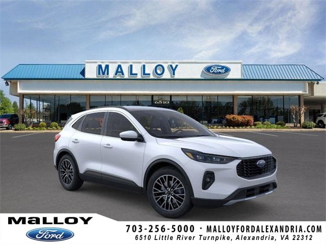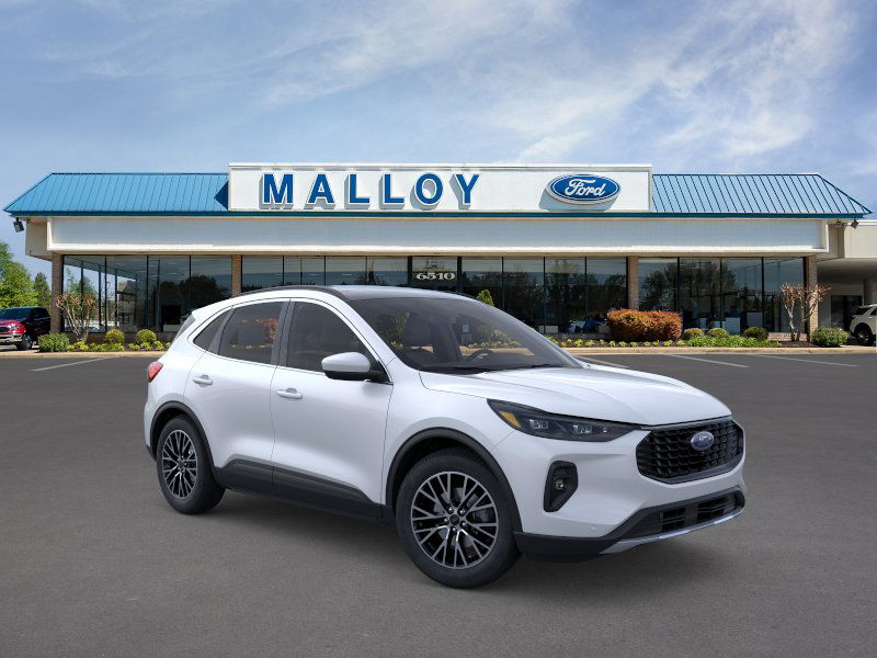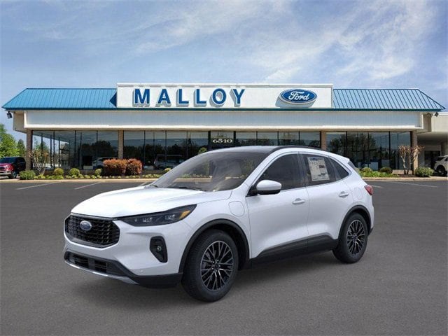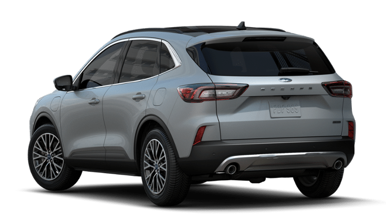 Equipment Group 700A, Memory Package, PHEV Premium Package (10-Way Power Driver's Seat, 12.3" Productivity Screen in Instrument Cluster, 360-Degree Camera w/Split View, 6-Way Power Passenger Seat, Auto-Dimming Rear-View Mirror, Front Parking Sensors, HD Radio, Head-Up Display, Heated ActiveX-Trimmed Front Sport Contour Seats, LED Lightbar Headlamps, Perimeter Alarm, Radio: B&O Sound System by Bang & Olufsen, Reverse Brake Assist, Universal Garage Door Opener (UGDO), and Wireless Charging Pad), 2.91 Axle Ratio, 4-Wheel Disc Brakes, 6 Speakers, ABS brakes, Air Conditioning, Alloy wheels, AM/FM radio: SiriusXM, AM/FM Stereo, Auto High-beam Headlights, Automatic temperature control, Black Roof-Rack Side Rails, Brake assist, Bumpers: body-color, Compass, Delay-off headlights, Driver door bin, Driver vanity mirror, Dual front impact airbags, Dual front side impact airbags, Electronic Stability Control, Emergency communication system: SYNC 4 911 Assist, FordPass Connect, Four wheel independent suspension, Front anti-roll bar, Front Bucket Seats, Front Center Armrest, Front dual zone A/C, Front fog lights, Front License Plate Bracket, Front reading lights, Fully automatic headlights, Heated door mirrors, Heated front seats, Heated steering wheel, Heated Vinyl/Cloth Front Sport Contour Bucket Seats, Illuminated entry, Knee airbag, Low tire pressure warning, Navigation system: Connected Navigation, Occupant sensing airbag, Outside temperature display, Overhead airbag, Overhead console, Panic alarm, Panoramic Vista Roof, Passenger door bin, Passenger vanity mirror, Power door mirrors, Power driver seat, Power Liftgate, Power steering, Power windows, Radio data system, Rear anti-roll bar, Rear reading lights, Rear seat center armrest, Rear window defroster, Rear window wiper, Remote keyless entry, Speed control, Speed-sensing steering, Speed-Sensitive Wipers, Split folding rear seat, Spoiler, Steering wheel mounted audio controls, SYNC 4 w/Enhanced Voice Recognition, Telescoping steering wheel, Tilt steering wheel, Traction control, Trip computer, Variably intermittent wipers, and Wheels: 18" Machined-Face Magnetic Aluminum. 2025 Ford Escape Plug-In Hybrid 2.5L iVCT Space Silver Metallic