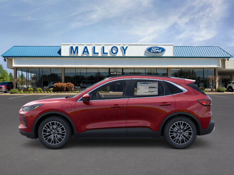 Equipment Group 700A, Memory Package, PHEV Premium Package (10-Way Power Driver's Seat, 12.3" Productivity Screen in Instrument Cluster, 360-Degree Camera w/Split View, 6-Way Power Passenger Seat, Auto-Dimming Rear-View Mirror, Front Parking Sensors, HD Radio, Head-Up Display, Heated ActiveX-Trimmed Front Sport Contour Seats, LED Lightbar Headlamps, Perimeter Alarm, Radio: B&O Sound System by Bang & Olufsen, Reverse Brake Assist, Universal Garage Door Opener (UGDO), and Wireless Charging Pad), 2.91 Axle Ratio, 4-Wheel Disc Brakes, 6 Speakers, ABS brakes, Air Conditioning, Alloy wheels, AM/FM radio: SiriusXM, AM/FM Stereo, Auto High-beam Headlights, Automatic temperature control, Black Roof-Rack Side Rails, Brake assist, Bumpers: body-color, Compass, Delay-off headlights, Driver door bin, Driver vanity mirror, Dual front impact airbags, Dual front side impact airbags, Electronic Stability Control, Emergency communication system: SYNC 4 911 Assist, FordPass Connect, Four wheel independent suspension, Front anti-roll bar, Front Bucket Seats, Front Center Armrest, Front dual zone A/C, Front fog lights, Front License Plate Bracket, Front reading lights, Fully automatic headlights, Heated door mirrors, Heated front seats, Heated steering wheel, Heated Vinyl/Cloth Front Sport Contour Bucket Seats, Illuminated entry, Knee airbag, Low tire pressure warning, Navigation system: Connected Navigation, Occupant sensing airbag, Outside temperature display, Overhead airbag, Overhead console, Panic alarm, Panoramic Vista Roof, Passenger door bin, Passenger vanity mirror, Power door mirrors, Power driver seat, Power Liftgate, Power steering, Power windows, Radio data system, Rear anti-roll bar, Rear reading lights, Rear seat center armrest, Rear window defroster, Rear window wiper, Remote keyless entry, Speed control, Speed-sensing steering, Speed-Sensitive Wipers, Split folding rear seat, Spoiler, Steering wheel mounted audio controls, SYNC 4 w/Enhanced Voice Recognition, Telescoping steering wheel, Tilt steering wheel, Traction control, Trip computer, Variably intermittent wipers, and Wheels: 18" Machined-Face Magnetic Aluminum. 2025 Ford Escape Plug-In Hybrid 2.5L iVCT Rapid Red Metallic Tinted Clearcoat