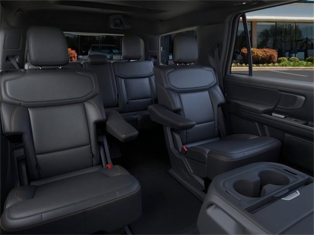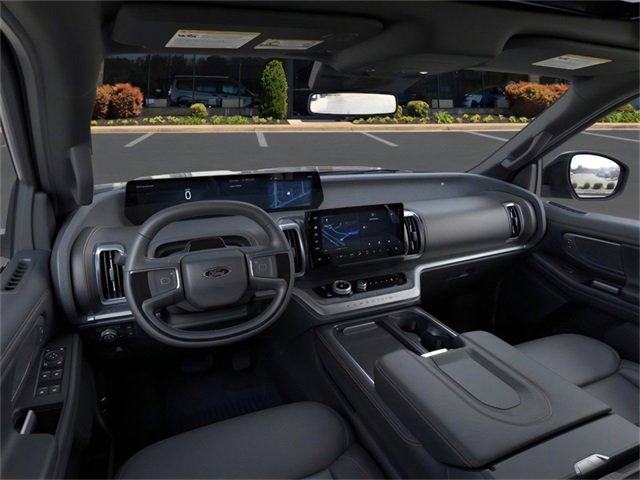 Equipment Group 501A High Package (2nd Row Power-Folding Captain's Chairs), 10 Speakers, 3.73 Axle Ratio, 3rd row seats: split-bench, 4-Wheel Disc Brakes, ABS brakes, Adjustable pedals, Air Conditioning, Alloy wheels, AM/FM radio: SiriusXM with 360L, Apple CarPlay/Android Auto, Auto High-beam Headlights, Auto-dimming door mirrors, Auto-dimming Rear-View mirror, Automatic temperature control, BlueCruise Equipped (1-Year Plan), Brake assist, Bumpers: body-color, Compass, Delay-off headlights, Driver door bin, Driver vanity mirror, Dual front impact airbags, Dual front side impact airbags, Electronic Stability Control, Emergency communication system: 911 Assist, Exterior Parking Camera Rear, Four wheel independent suspension, Front anti-roll bar, Front Bucket Seats, Front Center Armrest, Front dual zone A/C, Front fog lights, Front License Plate Bracket, Front reading lights, Fully automatic headlights, Garage door transmitter, Heated & Ventilated Leather Front Captain's Chairs, Heated door mirrors, Heated front seats, Heated steering wheel, Illuminated entry, Leather steering wheel, Low tire pressure warning, Memory seat, Navigation System, Occupant sensing airbag, Outside temperature display, Overhead airbag, Overhead console, Panic alarm, Passenger door bin, Passenger vanity mirror, Pedal memory, Power door mirrors, Power driver seat, Power moonroof: Vista Roof, Power passenger seat, Power steering, Power windows, Radio data system, Radio: B&O Sound System by Bang & Olufsen, Rear air conditioning, Rear anti-roll bar, Rear reading lights, Rear window defroster, Rear window wiper, Reclining 3rd row seat, Remote keyless entry, Security system, SiriusXM w/360L, Speed control, Speed-sensing steering, Speed-Sensitive Wipers, Split folding rear seat, Spoiler, Steering wheel memory, Steering wheel mounted audio controls, Tachometer, Telescoping steering wheel, Tilt steering wheel, Traction control, Trip computer, Turn signal indicator mirrors, Variably intermittent wipers, Ventilated front seats, Voltmeter, and Wheels: 18" Dark Carbonized Gray Painted Aluminum. 2025 Ford Expedition 3.5L V6 Agate Black Metallic