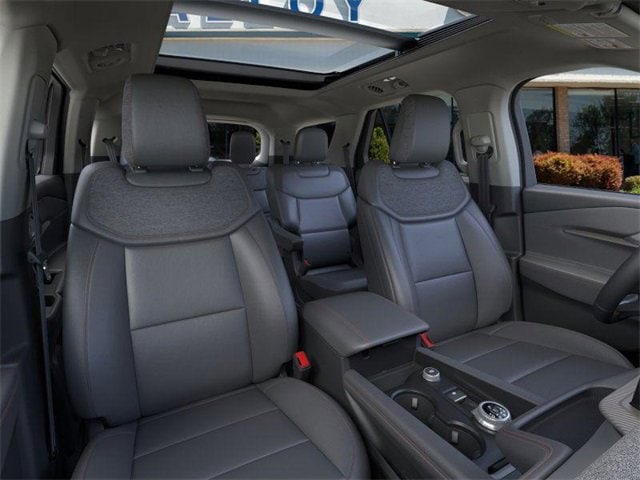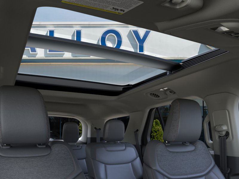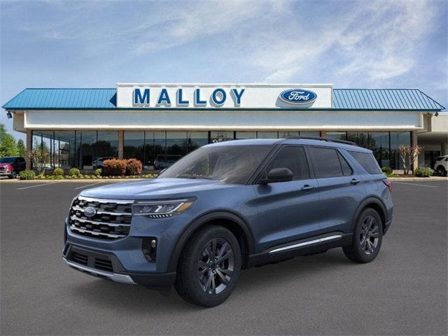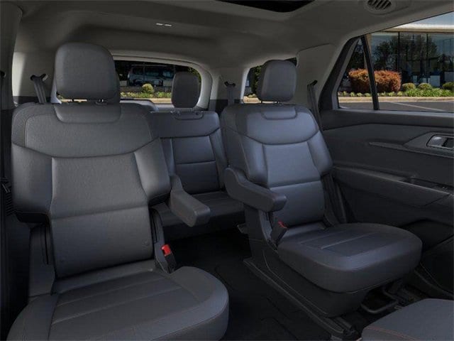 Active Comfort Package (Front Fascia, Heated ActiveX Seating Material Captain's Chairs, Heated Steering Wheel, Remote Start System, Second Row HVAC Controls, and Universal Garage Door Opener (UGDO)), Equipment Group 200A Standard Package, 3.58 Non-Limited Slip Rear Axle, 3rd row seats: bench, 4-Wheel Disc Brakes, 6 Speakers, ABS brakes, Air Conditioning, Alloy wheels, AM/FM radio: SiriusXM with 360L, AM/FM Stereo, Apple CarPlay/Android Auto, Auto High-beam Headlights, Automatic temperature control, Brake assist, Bumpers: body-color, Compass, Delay-off headlights, Driver door bin, Driver vanity mirror, Dual front impact airbags, Dual front side impact airbags, Electronic Stability Control, Emergency communication system: 911 Assist, Exterior Parking Camera Rear, Four wheel independent suspension, Front anti-roll bar, Front Bucket Seats, Front Center Armrest, Front dual zone A/C, Front License Plate Bracket, Front reading lights, Fully automatic headlights, Heated door mirrors, Heated front seats, Illuminated entry, Knee airbag, Leather steering wheel, Low tire pressure warning, Navigation System, Occupant sensing airbag, Outside temperature display, Overhead airbag, Overhead console, Panic alarm, Panoramic Vista Roof w/Power Shade, Passenger door bin, Passenger vanity mirror, Power door mirrors, Power driver seat, Power Liftgate, Power passenger seat, Power steering, Power windows, Rear air conditioning, Rear anti-roll bar, Rear reading lights, Rear window defroster, Rear window wiper, Remote keyless entry, SecuriCode Keyless Entry Keypad, Security system, Speed control, Speed-sensing steering, Speed-Sensitive Wipers, Split folding rear seat, Spoiler, Steering wheel mounted audio controls, Tachometer, Telescoping steering wheel, Tilt steering wheel, Traction control, Trip computer, Unique Heated Cloth Captain's Chairs, Variably intermittent wipers, Wheels: 18" Sparkle Silver-Painted Aluminum, and Wheels: 20" Carbonized Gray-Painted Aluminum. 2025 Ford Explorer 2.3L EcoBoost I-4 Vapor Blue Metallic