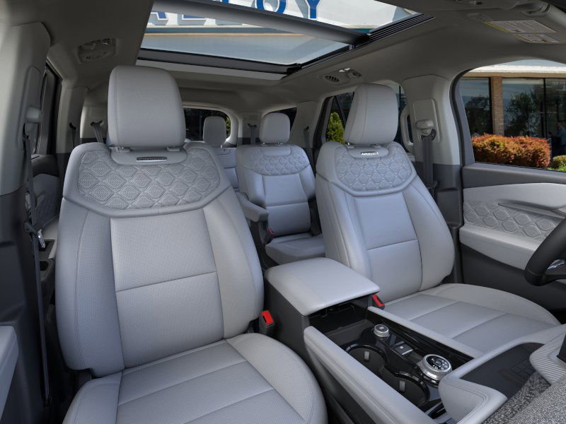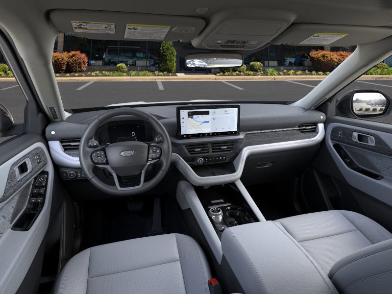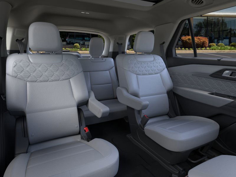 Equipment Group 600A Standard Package, Lux Leather Package (Leather Seating Surfaces Sport Captain Chairs, Platinum Badges on Front Row Seats, Quilting & Stitching on Door Panels, and Quilting & Stitching on Seats), Ultimate Package (Wheels: 21" Dark Alloy-Painted Machined Aluminum), 14 Speakers, 3rd row seats: bench, 4-Wheel Disc Brakes, ABS brakes, ActiveX Trimmed Sport Captain's Chairs, Air Conditioning, Alloy wheels, AM/FM radio: SiriusXM with 360L, Apple CarPlay/Android Auto, Auto High-beam Headlights, Auto-dimming door mirrors, Auto-dimming Rear-View mirror, Automatic temperature control, Brake assist, Bumpers: body-color, Compass, Delay-off headlights, Driver door bin, Driver vanity mirror, Dual front impact airbags, Dual front side impact airbags, Electronic Stability Control, Emergency communication system: 911 Assist, Exterior Parking Camera Rear, Ford BlueCruise Equipped (1-Year Plan) (DISC), Four wheel independent suspension, Front anti-roll bar, Front Bucket Seats, Front Center Armrest, Front dual zone A/C, Front fog lights, Front License Plate Bracket, Front reading lights, Fully automatic headlights, Garage door transmitter, Heated door mirrors, Heated front seats, Heated rear seats, Heated steering wheel, Illuminated entry, Knee airbag, Leather steering wheel, Low tire pressure warning, Memory seat, Navigation System, Occupant sensing airbag, Outside temperature display, Overhead airbag, Overhead console, Panic alarm, Passenger door bin, Passenger vanity mirror, Power door mirrors, Power driver seat, Power Liftgate, Power moonroof, Power passenger seat, Power steering, Power windows, Radio data system, Radio: B&O Sound System by Bang & Olufsen w/HD, Rain sensing wipers, Rear air conditioning, Rear anti-roll bar, Rear reading lights, Rear window defroster, Rear window wiper, Remote keyless entry, SecuriCode Keyless Entry Keypad, Security system, Speed control, Speed-sensing steering, Speed-Sensitive Wipers, Split folding rear seat, Spoiler, Steering wheel mounted audio controls, Tachometer, Telescoping steering wheel, Tilt steering wheel, Traction control, Trip computer, Turn signal indicator mirrors, Variably intermittent wipers, Ventilated front seats, and Wheels: 20" Luster Nickel-Painted Aluminum. Recent Arrival! 2025 Ford Explorer 3.0L EcoBoost V6 Star White Metallic Tri-Coat
