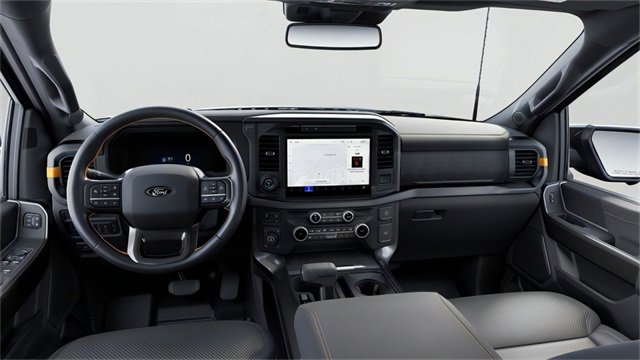 Bed Utility Package (4 Pickup Box Tie-Down Plates, LED Box Lighting, and Power Tailgate), Equipment Group 402A High (2nd Row Heated Seats, Ambient Lighting, Auto-Dimming Rear-View Mirror, Front Axle w/Torsen Differential, Heads-Up Display, Heated Steering Wheel, LED Taillamps, Media Bin Door, Modular Front Bumper & Carbon Black Rear Bumper, Power Glass Heated Sideview Mirrors, Power-Adjustable Pedals w/Memory, Premium Wrapped Steering Wheel, Radio: B&O Unleashed Sound System by Bang & Olufsen, Rain-Sensing Wipers, Two-Speed Automatic AWD w/Mechanical Locking 4WD, Unique Tremor Leather-Trimmed Bucket Seats, and Universal Garage Door Opener), GVWR: 7,100 lbs Payload Package, Mobile Office Package (Console Worksurface, Partitioned Lockable Rear Storage, and Wireless Charging), Tow/Haul Package (Integrated Trailer Brake Controller), 4-Wheel Disc Brakes, 6" Extended Running Boards, 8 Speakers, ABS brakes, Adjustable pedals, Air Conditioning, Alloy wheels, AM/FM radio: SiriusXM with 360L, Auto High-beam Headlights, Auto-dimming door mirrors, Auto-dimming Rear-View mirror, Automatic temperature control, Brake assist, Bumpers: body-color, Compass, Delay-off headlights, Driver door bin, Driver vanity mirror, Dual front impact airbags, Dual front side impact airbags, Electronic Locking w/3.73 Axle Ratio, Electronic Stability Control, Emergency communication system: SYNC 4 911 Assist, Front anti-roll bar, Front Bucket Seats, Front Center Armrest, Front dual zone A/C, Front fog lights, Front reading lights, Front wheel independent suspension, Fully automatic headlights, Heated door mirrors, Heated front seats, Illuminated entry, Internet access capable: FordPass Connect 5G, Low tire pressure warning, Navigation system: Connected Navigation, Occupant sensing airbag, Outside temperature display, Overhead airbag, Overhead console, Panic alarm, Passenger door bin, Passenger vanity mirror, Power door mirrors, Power driver seat, Power passenger seat, Power steering, Power windows, Pro Access Tailgate, Radio data system, Radio: B&O Sound System by Bang & Olufsen, Rear reading lights, Rear step bumper, Rear window defroster, Remote keyless entry, Security system, Speed control, Split folding rear seat, Steering wheel mounted audio controls, SYNC 4 w/Enhanced Voice Recognition, Tachometer, Tailgate Step w/Tailgate Work Surface, Telescoping steering wheel, Tilt steering wheel, Tough Bed Spray-In Bedliner, Traction control, Tray Style Floor Liner w/Carpet Mats, Trip computer, Turn signal indicator mirrors, Twin Panel Moonroof, Unique Sport Cloth 40/Console/40 Power Front Seat, Variably intermittent wipers, Voltmeter, and Wheels: 18" Alloy w/Dark Matte Finish. 2025 Ford F-150 5.0L V8 Agate Black Metallic