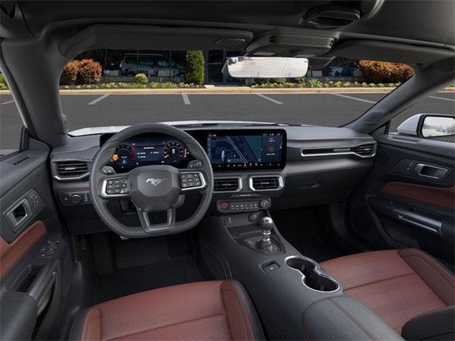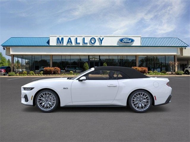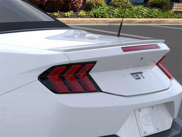 Equipment Group 401A High Package (Driver Seat & Mirrors Memory, Illuminated Door-Sill Scuff Plates, Integrated Turn Signals, and Leather-Trimmed Bucket Seats w/Color Accents), Ford Co-Pilot360 Assist+ (Connected Navigation and Pre-Collision Assist w/Automatic Emergency Braking), Security Package (Active Anti-Theft System, Locking Center Console, and Wheel Locking Kit), 3.55 Limited Slip Rear Axle, 4-Wheel Disc Brakes, 9 Speakers, ABS brakes, Adaptive Speed Control, Air Conditioning, Alloy wheels, AM/FM radio: SiriusXM with 360L, AM/FM Stereo, Auto High-beam Headlights, Auto-dimming Rear-View mirror, Automatic temperature control, Brake assist, Bumpers: body-color, Climate Controlled Heated/Cooled Front Seats, Compass, Convertible roof lining, Delay-off headlights, Driver door bin, Driver vanity mirror, Dual front impact airbags, Dual front side impact airbags, Electronic Stability Control, Emergency communication system: 911 Assist, Exterior Parking Camera Rear, Four wheel independent suspension, Front anti-roll bar, Front Bucket Seats, Front Center Armrest, Front dual zone A/C, Front reading lights, Fully automatic headlights, Garage door transmitter, Glass rear window, HD Radio, Heated door mirrors, Heated front seats, Heated steering wheel, Illuminated entry, Instrument Panel w/Accent Stitch, Knee airbag, Lane-Keeping System w/Lane Keeping Aid, Leather Shift Knob, Leather steering wheel, Low tire pressure warning, Occupant sensing airbag, Outside temperature display, Overhead console, Panic alarm, Passenger door bin, Passenger vanity mirror, Power convertible roof, Power door mirrors, Power driver seat, Power passenger seat, Power steering, Power windows, Premium Floor Liners Front & Rear (w/Carpet Mats), Radio data system, Rain sensing wipers, Rear anti-roll bar, Rear Parking Sensors, Rear window defroster, Remote keyless entry, Security system, SiriusXM w/360L, Speed control, Speed-sensing steering, Speed-Sensitive Wipers, Spoiler, Sport steering wheel, Steering wheel mounted audio controls, SYNC 4, Tachometer, Telescoping steering wheel, Tilt steering wheel, Traction control, Trip computer, Turn signal indicator mirrors, Variably intermittent wipers, Ventilated front seats, Voltmeter, Wheels: 19" x 8.5" Shadow Silver-Painted Aluminum, and Wheels: 20" x 9" Premium-Painted Aluminum. 2025 Ford Mustang 5.0L V8 Ti-VCT Oxford White