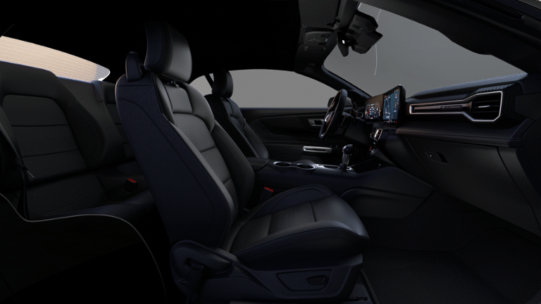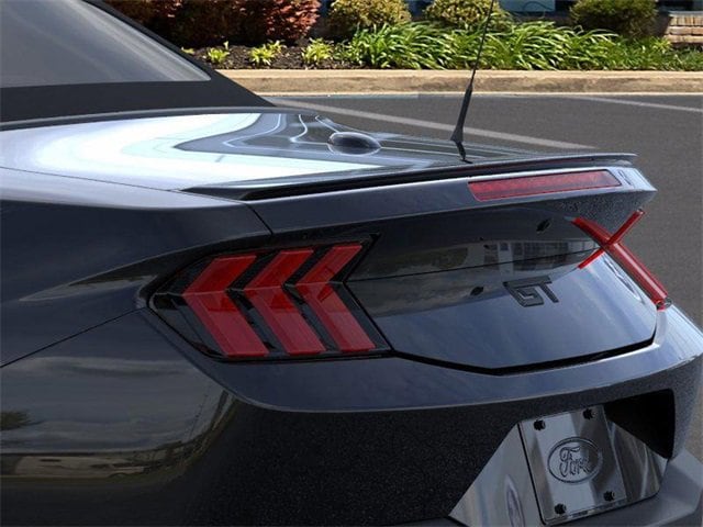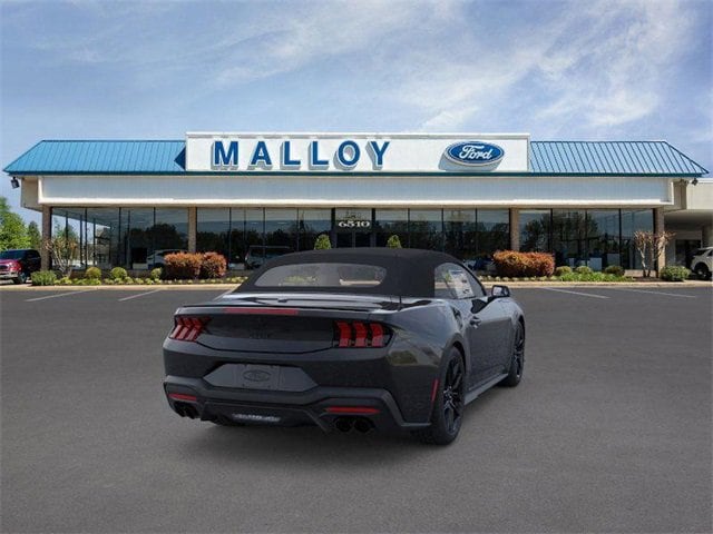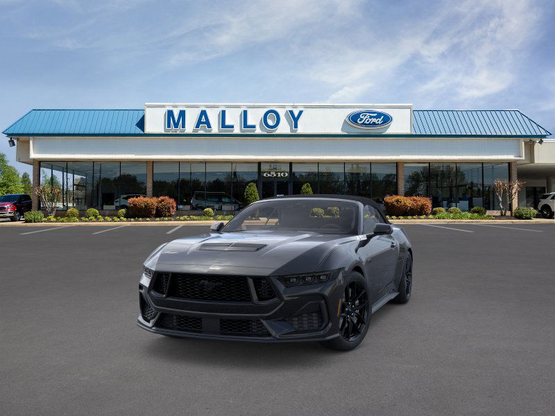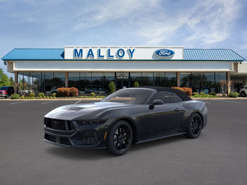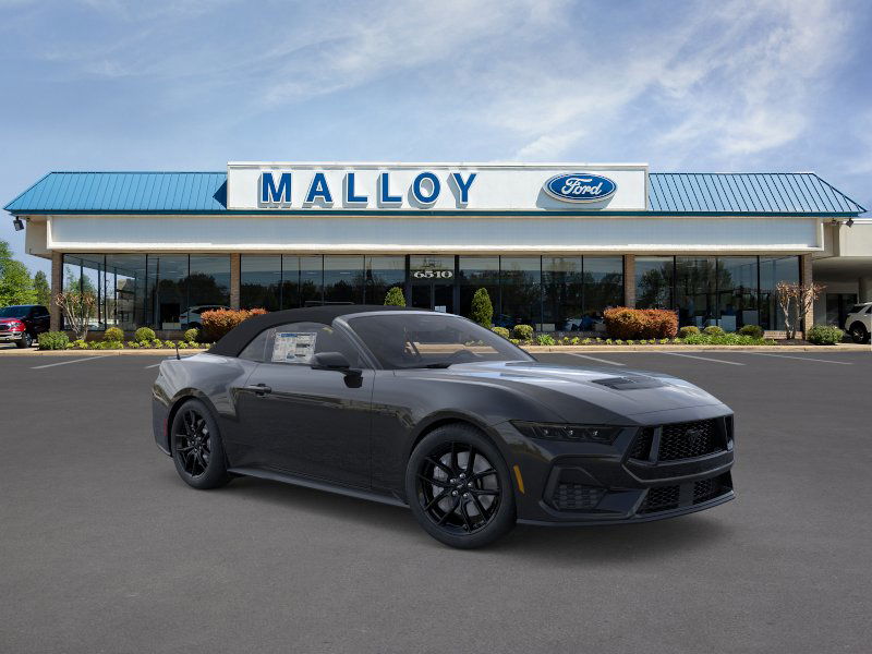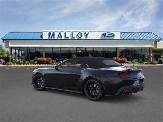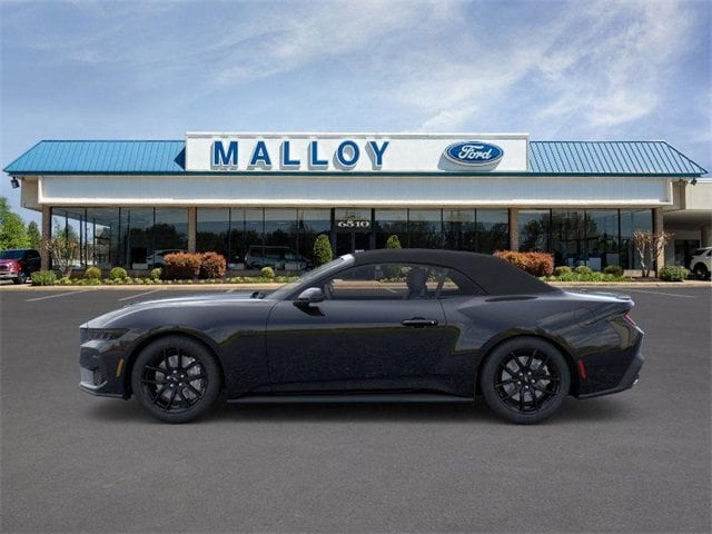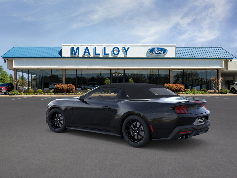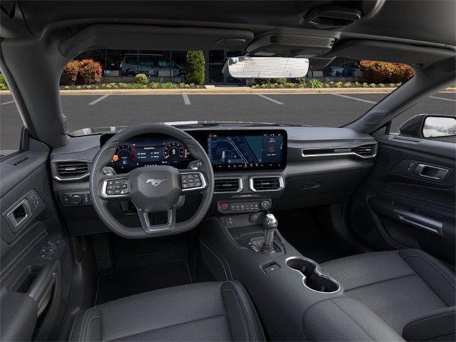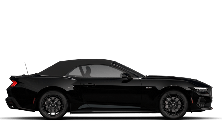 Equipment Group 401A High Package (Driver Seat & Mirrors Memory, Illuminated Door-Sill Scuff Plates, Integrated Turn Signals, and Leather-Trimmed Bucket Seats w/Color Accents), Ford Co-Pilot360 Assist+ (Connected Navigation and Pre-Collision Assist w/Automatic Emergency Braking), Mustang Nite Pony Package (Black GT Pony Badges, Black Mirror Caps, and Headlamps w/Black Bezels), Security Package (Active Anti-Theft System, Locking Center Console, and Wheel Locking Kit), 3.55 Limited Slip Rear Axle, 4-Wheel Disc Brakes, 9 Speakers, ABS brakes, Active Valve Performance Exhaust, Adaptive Speed Control, Air Conditioning, Alloy wheels, AM/FM radio: SiriusXM with 360L, AM/FM Stereo, Auto High-beam Headlights, Auto-dimming Rear-View mirror, Automatic temperature control, Black Painted Blade Decklid Spoiler, Brake assist, Bumpers: body-color, Climate Controlled Heated/Cooled Front Seats, Compass, Convertible roof lining, Delay-off headlights, Driver door bin, Driver vanity mirror, Dual front impact airbags, Dual front side impact airbags, Electronic Stability Control, Emergency communication system: 911 Assist, Exterior Parking Camera Rear, Four wheel independent suspension, Front anti-roll bar, Front Bucket Seats, Front Center Armrest, Front dual zone A/C, Front reading lights, Fully automatic headlights, Garage door transmitter, Glass rear window, HD Radio, Heated door mirrors, Heated front seats, Heated steering wheel, Illuminated entry, Instrument Panel w/Accent Stitch, Knee airbag, Lane-Keeping System w/Lane Keeping Aid, Leather Shift Knob, Leather steering wheel, Low tire pressure warning, Occupant sensing airbag, Outside temperature display, Overhead console, Panic alarm, Passenger door bin, Passenger vanity mirror, Power convertible roof, Power door mirrors, Power driver seat, Power passenger seat, Power steering, Power windows, Radio data system, Rain sensing wipers, Rear anti-roll bar, Rear Parking Sensors, Rear window defroster, Remote keyless entry, Remote Start System, Security system, SiriusXM w/360L, Speed control, Speed-sensing steering, Speed-Sensitive Wipers, Spoiler, Sport steering wheel, Steering wheel mounted audio controls, SYNC 4, Tachometer, Telescoping steering wheel, Tilt steering wheel, Traction control, Trip computer, Turn signal indicator mirrors, Variably intermittent wipers, Ventilated front seats, Voltmeter, and Wheels: 19" x 8.5" Shadow Silver-Painted Aluminum. 2025 Ford Mustang 5.0L V8 Ti-VCT Shadow Black