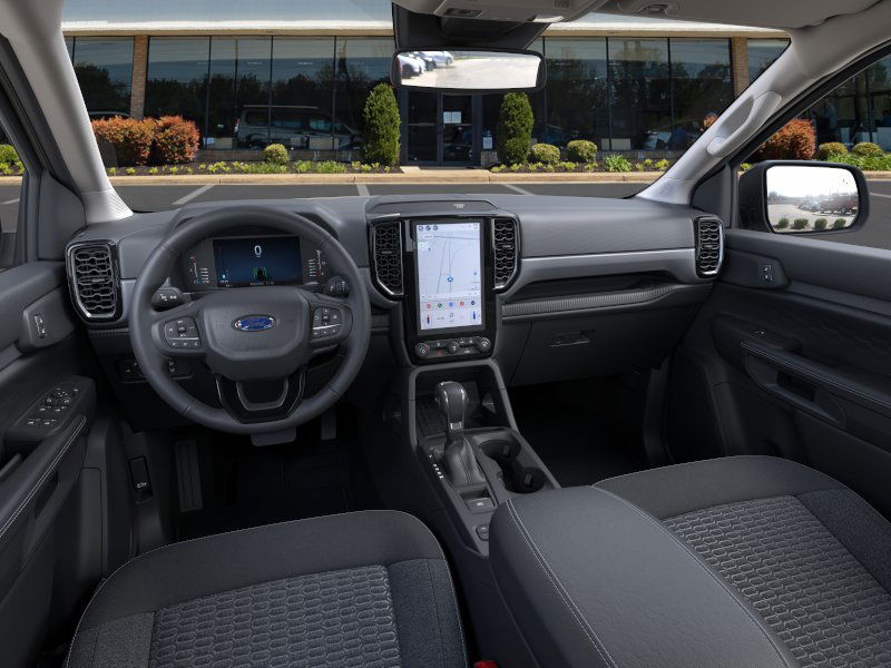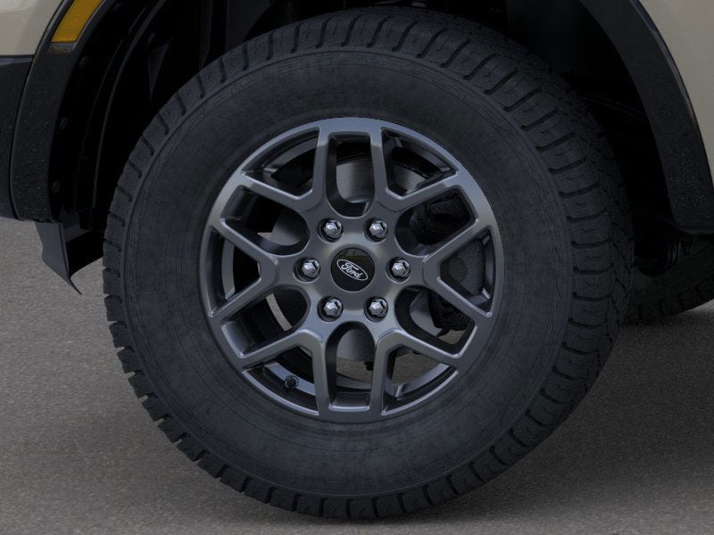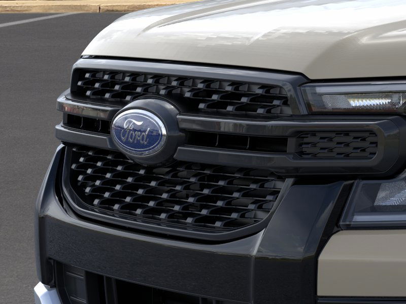 Equipment Group 300A Standard, Sport Appearance Package (Gray Painted Center Bar & Grille Surround, Gray Painted Front Fascia & Rear Bumper, and Sport Box Decal), 4-Wheel Disc Brakes, 6 Speakers, ABS brakes, Air Conditioning, Alloy wheels, AM/FM radio: SiriusXM, AM/FM Stereo, Auto High-beam Headlights, Auto-dimming Rear-View mirror, Brake assist, Cloth Front Bucket Seats, Compass, Delay-off headlights, Driver door bin, Driver vanity mirror, Dual front impact airbags, Dual front side impact airbags, Electronic Stability Control, Emergency communication system: SYNC 4 911 Assist, Front anti-roll bar, Front Bucket Seats, Front Center Armrest, Front fog lights, Front License Plate Bracket, Front reading lights, Front wheel independent suspension, Fully automatic headlights, Illuminated entry, Leather Shift Knob, Low tire pressure warning, Navigation system: Connected Navigation, Occupant sensing airbag, Outside temperature display, Overhead airbag, Overhead console, Panic alarm, Passenger door bin, Passenger vanity mirror, Power door mirrors, Power steering, Power windows, Rear reading lights, Rear seat center armrest, Rear step bumper, Rear window defroster, Remote keyless entry, Security system, SiriusXM Satellite Radio, Speed control, Speed-sensing steering, Steering wheel mounted audio controls, SYNC 4A w/Connected Navigation, Telescoping steering wheel, Tilt steering wheel, Traction control, Trip computer, Variably intermittent wipers, Voltmeter, and Wheels: 17" Gray-Painted Aluminum. 2025 Ford Ranger EcoBoost 2.3L I4 GTDi DOHC Turbocharged VCT Desert Sand