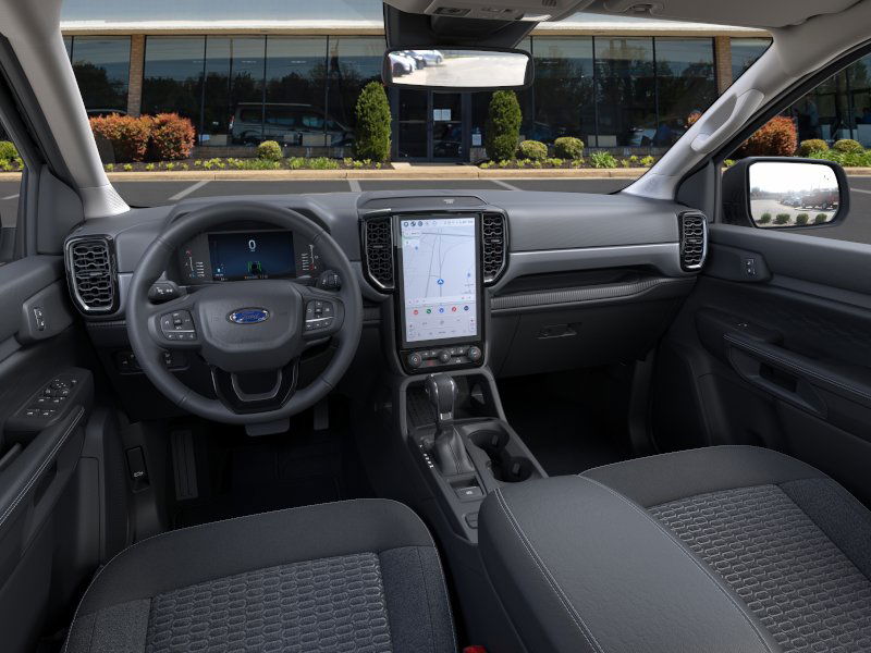 Convenience Package (120V/400W In-Cab & In-Bed Power Outlets and Wireless Charging Pad), Equipment Group 301A High (12" Display in Center Stack, Dual-Zone Electronic Climate Control (DEATC), and Power-Sliding Rear Window), FX4 Off-Road Package (FX4 Off-Road Box Decal, FX4 Selectable Drive Modes, Off-Road Screen in Center Stack, Off-Road Tuned Shocks, and Trail Control), Sport Appearance Package (Gray Painted Center Bar & Grille Surround, Gray Painted Front Fascia & Rear Bumper, and Sport Box Decal), Trailer Tow Package (Class IV Trailer Hitch Receiver), 4-Wheel Disc Brakes, 6 Speakers, ABS brakes, Air Conditioning, Alloy wheels, AM/FM radio: SiriusXM, AM/FM Stereo, Auto High-beam Headlights, Auto-dimming Rear-View mirror, Brake assist, Cloth Front Bucket Seats, Compass, Delay-off headlights, Driver door bin, Driver vanity mirror, Dual front impact airbags, Dual front side impact airbags, Electronic Stability Control, Emergency communication system: SYNC 4 911 Assist, Front anti-roll bar, Front Bucket Seats, Front Center Armrest, Front fog lights, Front License Plate Bracket, Front reading lights, Front wheel independent suspension, Fully automatic headlights, Illuminated entry, Leather Shift Knob, Low tire pressure warning, Navigation system: Connected Navigation, Occupant sensing airbag, Outside temperature display, Overhead airbag, Overhead console, Panic alarm, Passenger door bin, Passenger vanity mirror, Power door mirrors, Power steering, Power windows, Rear reading lights, Rear seat center armrest, Rear step bumper, Rear window defroster, Remote keyless entry, Security system, SiriusXM Satellite Radio, Speed control, Speed-sensing steering, Steering wheel mounted audio controls, SYNC 4A w/Connected Navigation, Telescoping steering wheel, Tilt steering wheel, Traction control, Trip computer, Variably intermittent wipers, Voltmeter, and Wheels: 17" Gray-Painted Aluminum. 2025 Ford Ranger EcoBoost 2.3L I4 GTDi DOHC Turbocharged VCT Marsh Gray