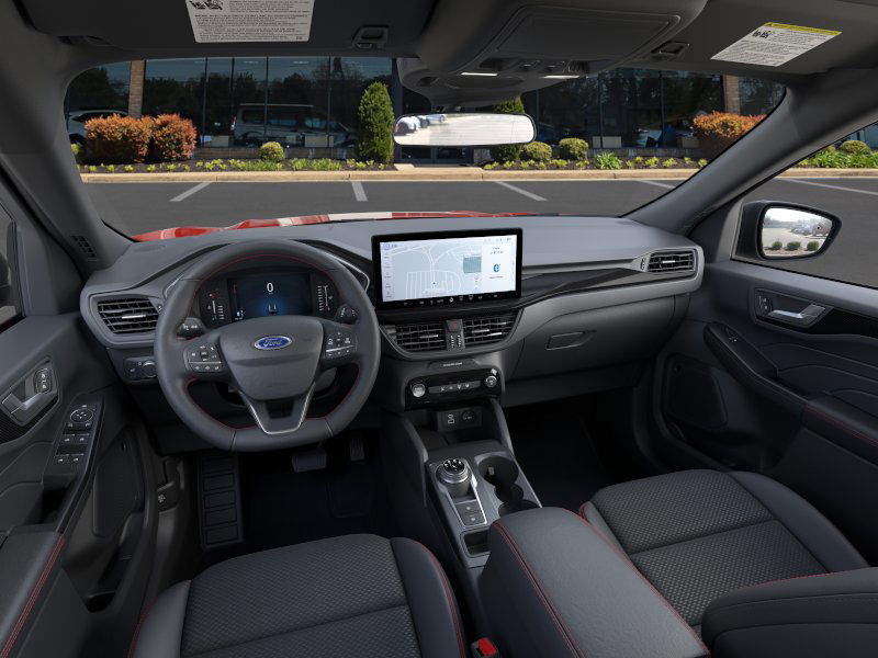 Cold Weather Package (Heated Front Row Seats, Heated Sideview Mirrors, Heated Steering Wheel, and Remote Starter System), Equipment Group 300A, Tech Pack #1 (Adaptive Cruise Control w/Stop-and-Go, Connected Navigation, Ford Co-Pilot360 Assist+, Intersection Assist, Predictive Speed Assist, Rear Parking Sensor, Rear-View Camera, and SYNC 4 w/Enhanced Voice Recognition), 3.81 Axle Ratio, 4-Wheel Disc Brakes, 6 Speakers, ABS brakes, Air Conditioning, Alloy wheels, AM/FM radio: SiriusXM, AM/FM Stereo, Auto High-beam Headlights, Automatic temperature control, Black Roof-Rack Side Rails, Brake assist, Bumpers: body-color, Compass, Delay-off headlights, Driver door bin, Driver vanity mirror, Dual front impact airbags, Dual front side impact airbags, Electronic Stability Control, Emergency communication system: SYNC 4 911 Assist, Ford App, Four wheel independent suspension, Front anti-roll bar, Front Bucket Seats, Front Center Armrest, Front dual zone A/C, Front License Plate Bracket, Front reading lights, Fully automatic headlights, Illuminated entry, Knee airbag, Low tire pressure warning, Occupant sensing airbag, Outside temperature display, Overhead airbag, Overhead console, Panic alarm, Panoramic Vista Roof, Passenger door bin, Passenger vanity mirror, Power door mirrors, Power driver seat, Power Liftgate, Power steering, Power windows, Radio data system, Rear anti-roll bar, Rear reading lights, Rear seat center armrest, Rear window defroster, Rear window wiper, Remote keyless entry, Speed control, Speed-sensing steering, Speed-Sensitive Wipers, Split folding rear seat, Spoiler, Sport steering wheel, Steering wheel mounted audio controls, SYNC 4, Tachometer, Telescoping steering wheel, Tilt steering wheel, Traction control, Trip computer, Variably intermittent wipers, Vinyl/Cloth Front Sport Contour Bucket Seats, and Wheels: 18" Rock Metallic Painted Aluminum. 2026 Ford Escape 1.5L EcoBoost Rapid Red Metallic Tinted Clearcoat
