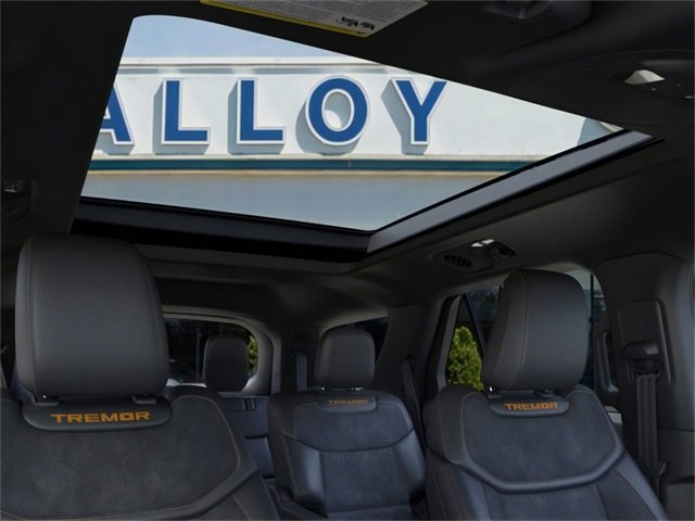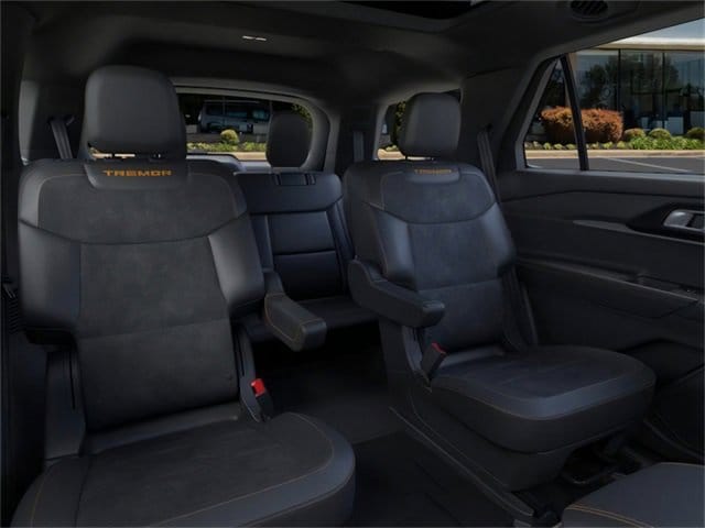 Equipment Group 800A Standard Package (Radio: B&O Sound System by Bang and Olufsen and Wheels: 18" High Gloss Black-Painted Aluminum), Ford Connectivity Package (one-Time Purchase - 7 Years), Tremor Ultimate Package (3rd Row PowerFold Seats, Ambient Lighting, Memory Driver's Seat, Multicontour Seats with Front Active Motion, Panoramic Fixed Glass Roof with Power Shade, Power-Folding with Autofold Side Mirrors, Radio: B&O Sound System by Bang & Olufsen, and Rain-Sensing Wipers (front Only)), 10 Speakers, 3rd row seats: bench, 4-Wheel Disc Brakes, ABS brakes, Air Conditioning, Alloy wheels, AM/FM radio: SiriusXM with 360L, Apple CarPlay/Android Auto, Auto High-beam Headlights, Automatic temperature control, BlueCruise (equipment + 1-Year + 90-Day Plan), BlueCruise Equipped (90-Day Trial), BlueCruise Hardware, Brake assist, Bumpers: body-color, Compass, Delay-off headlights, Driver door bin, Driver vanity mirror, Dual front impact airbags, Dual front side impact airbags, Electronic Sound Enhancement, Electronic Stability Control, Emergency communication system: 911 Assist, Exterior Parking Camera Rear, Four wheel independent suspension, Front anti-roll bar, Front Bucket Seats, Front Center Armrest, Front dual zone A/C, Front fog lights, Front License Plate Bracket, Front reading lights, Fully automatic headlights, Heated door mirrors, Heated front seats, Heated rear seats, Heated steering wheel, Illuminated entry, Knee airbag, Leather steering wheel, Low tire pressure warning, Navigation System, Occupant sensing airbag, Outside temperature display, Overhead airbag, Overhead console, Panic alarm, Passenger door bin, Passenger vanity mirror, Power door mirrors, Power driver seat, Power Liftgate, Power passenger seat, Power steering, Power windows, Rear air conditioning, Rear anti-roll bar, Rear reading lights, Rear window defroster, Rear window wiper, Remote keyless entry, Security system, Speed control, Speed-sensing steering, Speed-Sensitive Wipers, Split folding rear seat, Spoiler, Sport steering wheel, Steering wheel mounted audio controls, Tachometer, Telescoping steering wheel, Tilt steering wheel, Traction control, Trip computer, Variably intermittent wipers, and Ventilated front seats. 2026 Ford Explorer 3.0L EcoBoost V6 Agate Black Metallic