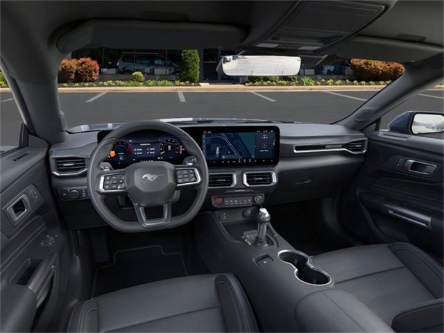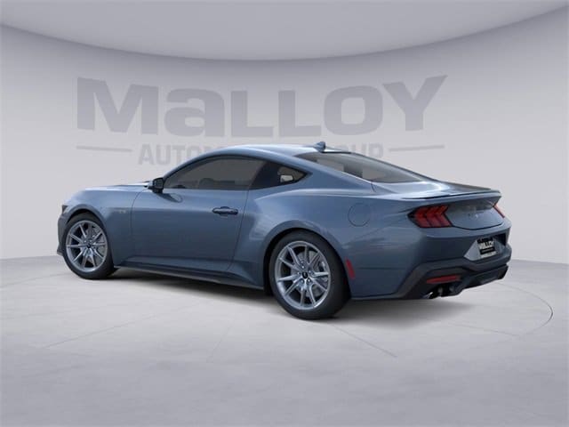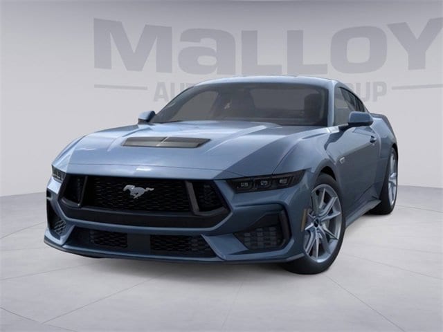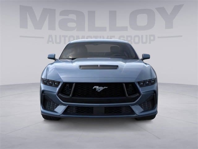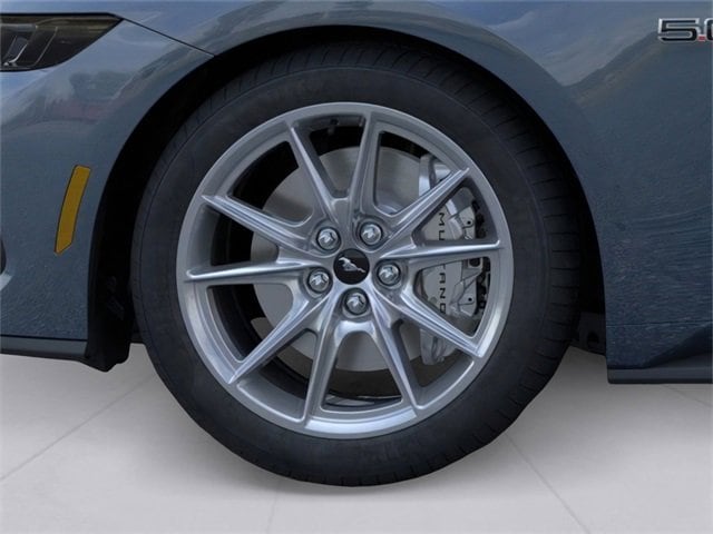 Anti-Theft Package (Active Anti-Theft System, Locking Center Console, and Wheel Locking Kit), Equipment Group 401A High Package (Aluminum Foot Pedals, Driver Seat Memory w/3 Settings, Leather-Trimmed Bucket Seats w/Color Accents, Magnesium Framed Panoramic Curved Display, and Perimeter Alarm), Ford Co-Pilot360 Assist+ (One-Year Connected Navigation and Pre-Collision Assist w/Automatic Emergency Braking), 3.55 Limited Slip Rear Axle, 4-Wheel Disc Brakes, ABS brakes, Active Valve Performance Exhaust, Adaptive Cruise Control w/Stop & Go, Air Conditioning, Alloy wheels, AM/FM Stereo, Auto High-beam Headlights, Automatic temperature control, B&O Sound System by Bang & Olufsen w/12 Speakers, Black Painted Wedge Decklid Spoiler, Brake assist, Bumpers: body-color, Compass, Delay-off headlights, Driver door bin, Driver vanity mirror, Dual front impact airbags, Dual front side impact airbags, Electronic Stability Control, Emergency communication system: 911 Assist, Exterior Parking Camera Rear, Floor Mats, 1st Row, Black w/City Silver GT Logo, Ford Connectivity Pack (One-Time Purchase - 7 Yrs), Four wheel independent suspension, Front anti-roll bar, Front Bucket Seats, Front Center Armrest, Front dual zone A/C, Front reading lights, Fully automatic headlights, Illuminated entry, Instrument Panel w/Accent Stitch, Knee airbag, Lane-Keeping System w/Lane Keeping Aid, Leather Shift Knob, Leather steering wheel, Low tire pressure warning, Occupant sensing airbag, Outside temperature display, Overhead airbag, Overhead console, Panic alarm, Passenger door bin, Passenger vanity mirror, Power door mirrors, Power steering, Power windows, Radio data system, Rain sensing wipers, Rear anti-roll bar, Rear Parking Sensors, Rear window defroster, Remote keyless entry, Speed control, Speed-sensing steering, Speed-Sensitive Wipers, Split folding rear seat, Sport steering wheel, Steering wheel mounted audio controls, SYNC 4, Tachometer, Telescoping steering wheel, Tilt steering wheel, Traction control, Trip computer, Variably intermittent wipers, Voltmeter, and Wedge Decklid Spoiler. 2026 Ford Mustang 5.0L V8 Ti-VCT Vapor Blue Metallic