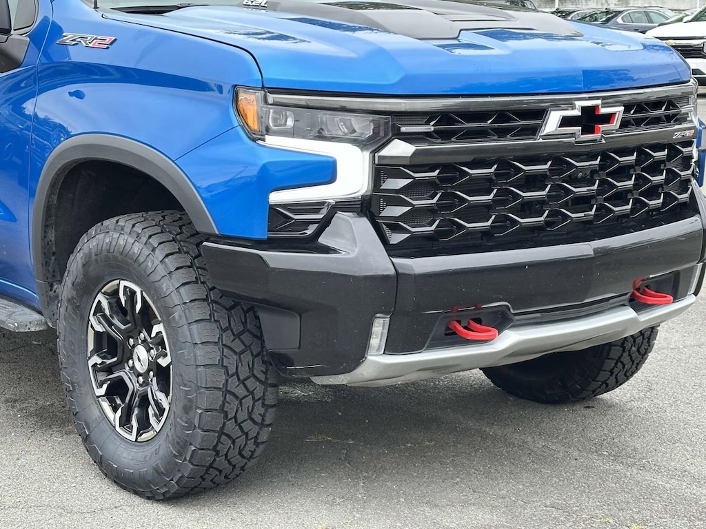 Trailering Package (Hitch Guidance), Up-Level Rear Seat w/Storage Package, ZR2 Suspension Package, 10-Speed Automatic, 4WD, Gray Leather, 10-Way Power Driver Seat w/Lumbar, 10-Way Power Passenger Seat Adjuster w/Lumbar, 12.3 Multicolor Reconfigurable Digital Display, 120-Volt Bed Mounted Power Outlet, 120-Volt Instrument Panel Power Outlet, 170 Amp Alternator, 2 USB Data Ports, 2nd Row Heated Outboard Seats, 3.23 Rear Axle Ratio, 4-Wheel Disc Brakes, 7 Speakers, ABS brakes, Air Conditioning, All-Weather Floor Liner (LPO), Alloy wheels, AM/FM radio: SiriusXM with 360L, Apple CarPlay/Android Auto, Auto High-beam Headlights, Auto-dimming door mirrors, Auto-Dimming Inside Rear-View Mirror, Auto-dimming Rear-View mirror, Auto-Locking Rear Differential, Automatic Emergency Braking, Automatic temperature control, Bed View Camera, Bluetooth® For Phone, Brake assist, Chevrolet Connected Access Capable, Chevytec Spray-On Black Bedliner, Color-Keyed Carpeting Floor Covering, Compass, Deep-Tinted Glass, Delay-off headlights, Driver door bin, Driver Memory, Driver vanity mirror, Dual Exhaust, Dual front impact airbags, Dual front side impact airbags, Dual Rear USB Ports (Charge Only), Electric Rear-Window Defogger, Electrical Steering Column Lock, Electronic Cruise Control, Electronic Stability Control, Electronic Transmission Range Selector Shifter, EZ Lift Power Lock & Release Tailgate, Floor Mounted Center Console, Following Distance Indicator, Forward Collision Alert, Front anti-roll bar, Front Bucket Seats, Front Center Armrest, Front dual zone A/C, Front fog lights, Front LED Fog Lamps, Front Pedestrian Braking, Front Rainsensing Wipers, Front reading lights, Front wheel independent suspension, Fully automatic headlights, Garage door transmitter, HD Surround Vision, Heated door mirrors, Heated Driver & Front Outboard Passenger Seats, Heated front seats, Heated rear seats, Heated Steering Wheel, Heated steering wheel, Heavy-Duty Air Filter, High Gloss Black Mirror Caps, Hill Descent Control, Hitch Guidance w/Hitch View, Illuminated entry, Integrated Trailer Brake Controller, IntelliBeam Automatic High Beam On/Off, Keyless Open & Start, Lane Keep Assist w/Lane Departure Warning, Leather Wrapped Steering Wheel, LED Cargo Area Lighting, Low tire pressure warning, Manual Tilt/Telescoping Steering Column, Memory seat, Occupant sensing airbag, OnStar & Chevrolet Connected Services Capable, Outside Heated Power-Adjustable Mirrors, Outside temperature display, Overhead airbag, Overhead console, Panic alarm, Passenger door bin, Passenger vanity mirror, Perforated Leather Seat Trim, Performance Red Recovery Hooks, Perimeter Lighting, Power door mirrors, Power driver seat, Power Front Passenger Windows w/Express Up/Down, Power Front Windows w/Driver Express Up/Down, Power passenger seat, Power Rear Windows w/Express Down, Power Sliding Rear Window w/Rear Defogger, Power steering, Power windows, Premium audio system: Chevrolet Infotainment 3 Premium, Premium Bose 7-Speaker Sound System, Radio data system, Radio: Chevrolet Infotainment 3 Premium System, Rain sensing wipers, Rear Cross Traffic Alert-Braking, Rear Park Assist, Rear Pedestrian Detection, Rear reading lights, Rear seat center armrest, Rear step bumper, Rear Wheelhouse Liners, Rear window defroster, Remote keyless entry, Remote Vehicle Starter System, Safety Alert Seat, Security system, SiriusXM w/360L, Speed control, Speed-sensing steering, Split folding rear seat, Standard Tailgate, Steering Wheel Audio Controls, Steering wheel mounted audio controls, Tachometer, Telescoping steering wheel, Theft Deterrent System