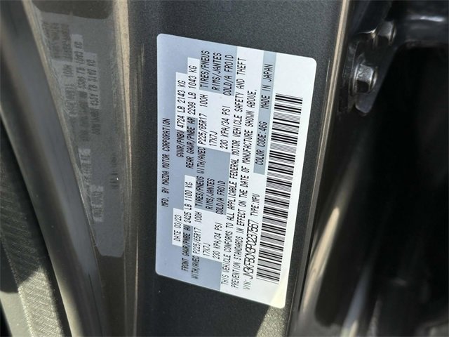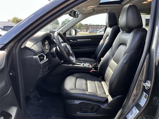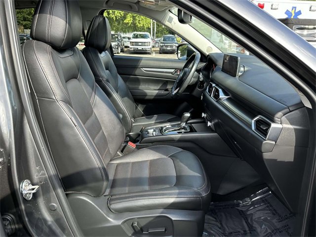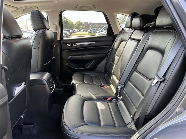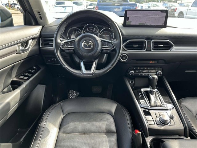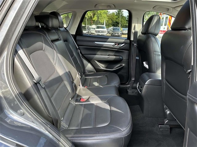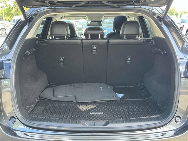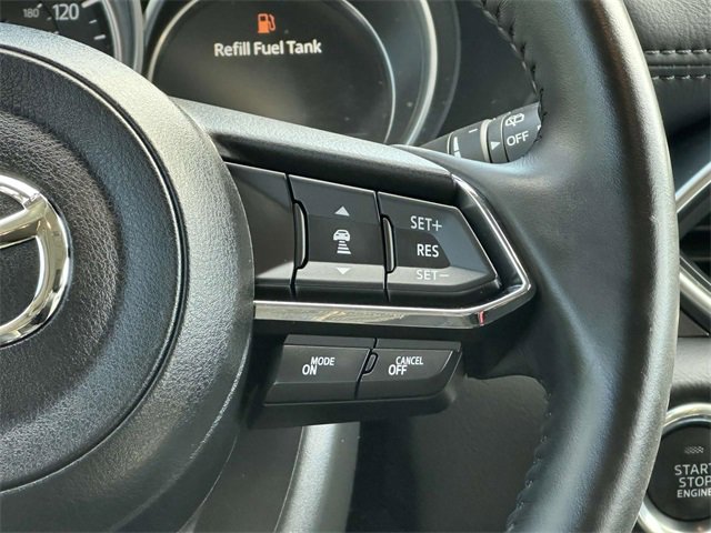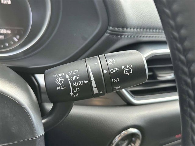AppLink/Apple CarPlay and Android Auto, Exterior Parking Camera Rear, Memory seat, Power driver seat, Power steering, Power windows, Remote keyless entry, Steering wheel mounted audio controls, 4-Wheel Disc Brakes, 4.624 Axle Ratio, 6 Speakers, ABS brakes, Air Conditioning, All-Weather Floor Mats, Alloy wheels, AM/FM radio, Auto High-beam Headlights, Auto-dimming Rear-View mirror, Automatic temperature control, Brake assist, Bumpers: body-color, Cargo Tray, Delay-off headlights, Driver door bin, Driver vanity mirror, Dual front impact airbags, Dual front side impact airbags, E911 Automatic Emergency Notification, Electronic Stability Control, Emergency communication system: MAZDA CONNECT, Four wheel independent suspension, Front anti-roll bar, Front Bucket Seats, Front Center Armrest w/Storage, Front dual zone A/C, Front reading lights, Fully automatic headlights, Garage door transmitter: HomeLink, Heated Front Bucket Seats, Heated front seats, Illuminated entry, Infotainment System Voice Command, Leather Seat Trim, Leather Shift Knob, Low tire pressure warning, Machine Gray Metallic Paint, Multifunction Commander Control, Occupant sensing airbag, Outside temperature display, Overhead airbag, Overhead console, Pandora, Panic alarm, Passenger door bin, Passenger vanity mirror, Power door mirrors, Power Liftgate, Power moonroof, Power passenger seat, Radio Broadcast Data System Program Information, Radio data system, Radio: AM/FM/HD Audio System, Rain sensing wipers, Rear anti-roll bar, Rear Bumper Guard, Rear reading lights, Rear seat center armrest, Rear window defroster, Rear window wiper, SMS Text Msg Audio Delivery & Reply, Speed control, Speed-sensing steering, Split folding rear seat, Spoiler, Tachometer, Telescoping steering wheel, Tilt steering wheel, Traction control, Trip computer, Turn signal indicator mirrors, Variably intermittent wipers, and Wheels: 17" x 7J Aluminum Alloy.