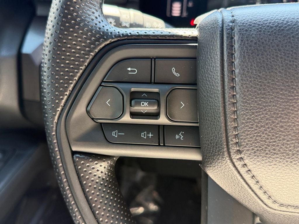 - Polyurethane manual tilt/telescopic steering wheel with phone, audio, display/infotainment, and driver assist controls.